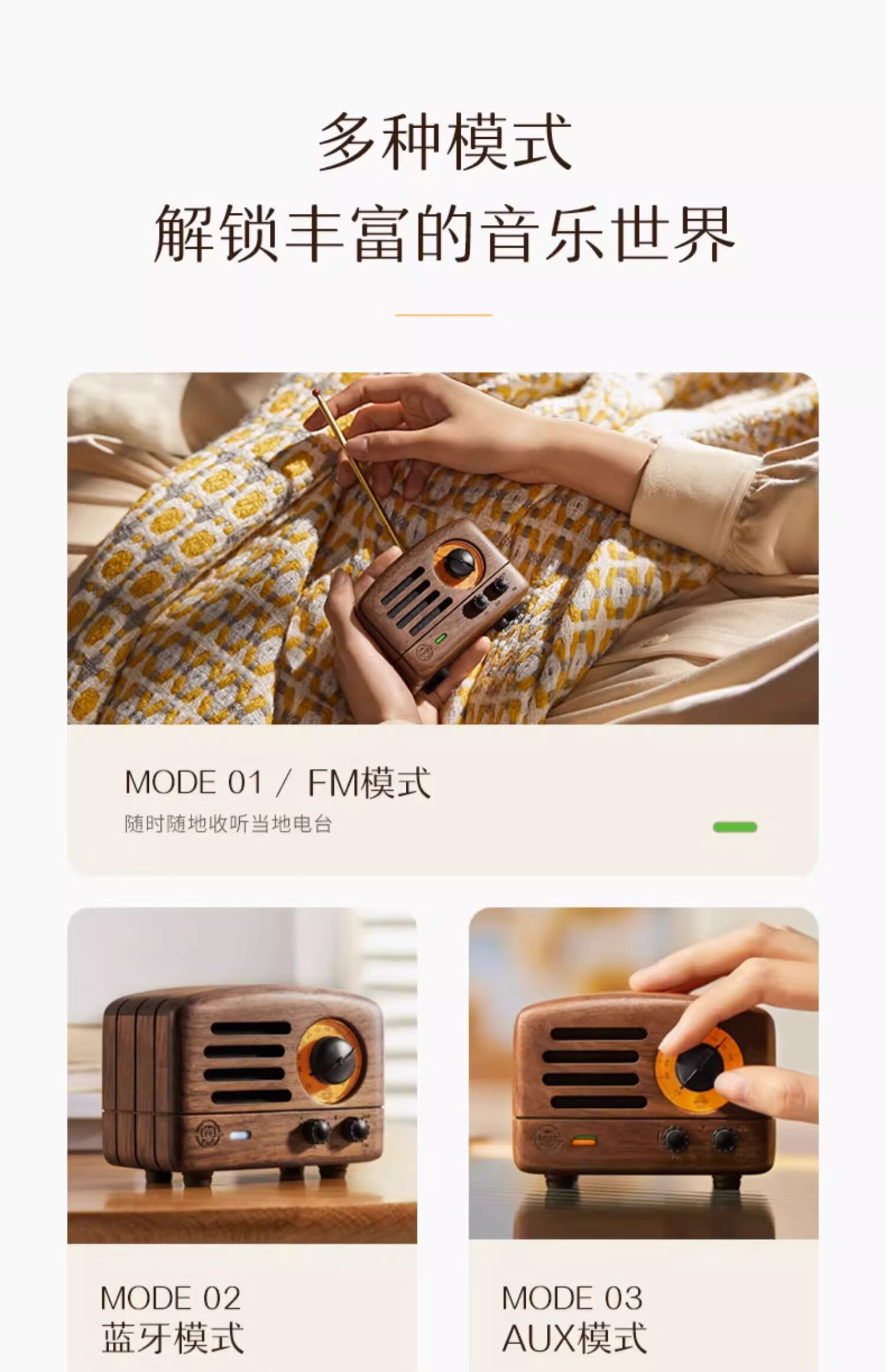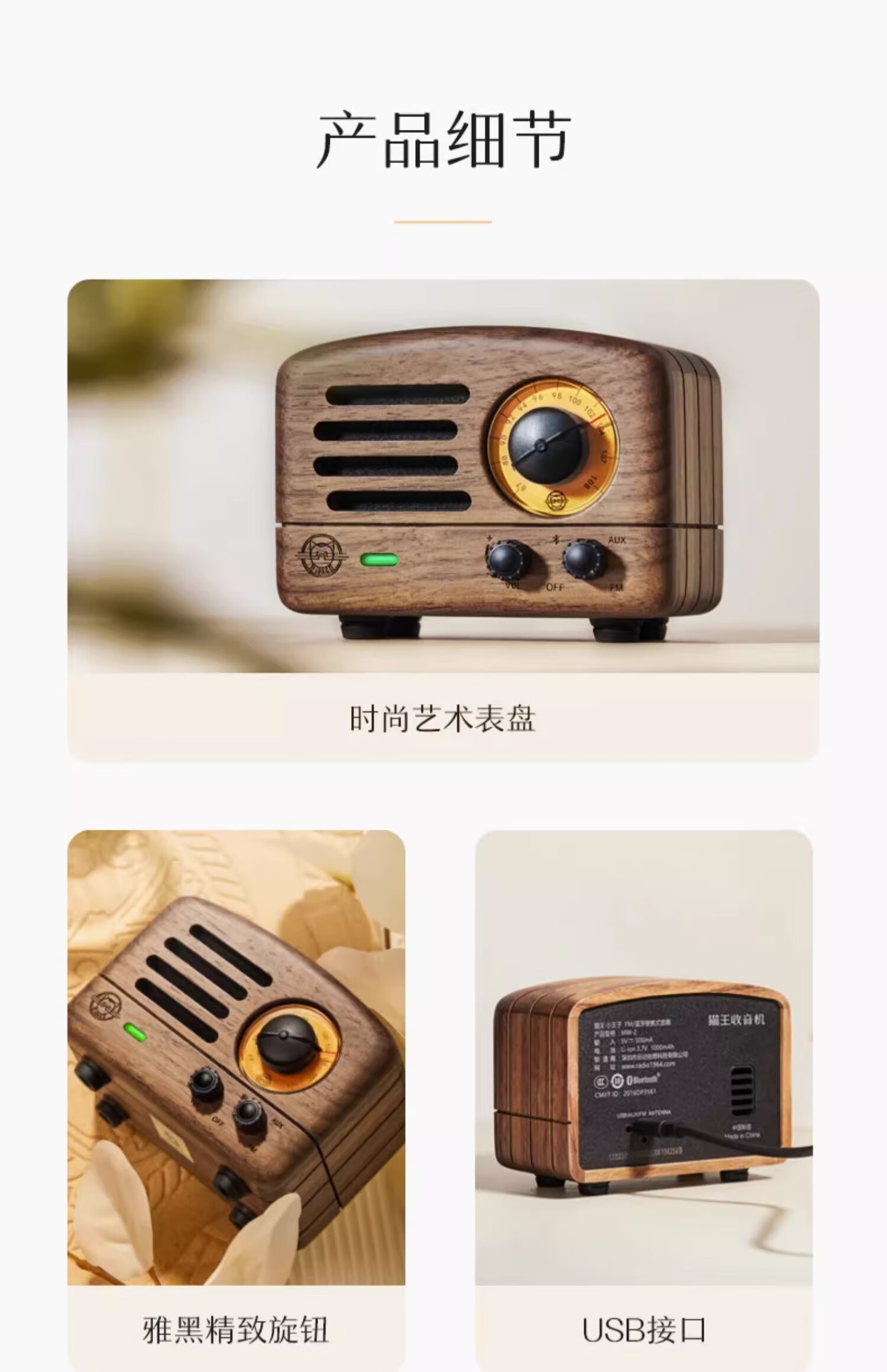 猫王音响 猫王收音机 MW-2 小王子胡桃木 创意复古音箱便携无线蓝牙音响家用户外原木质收音机