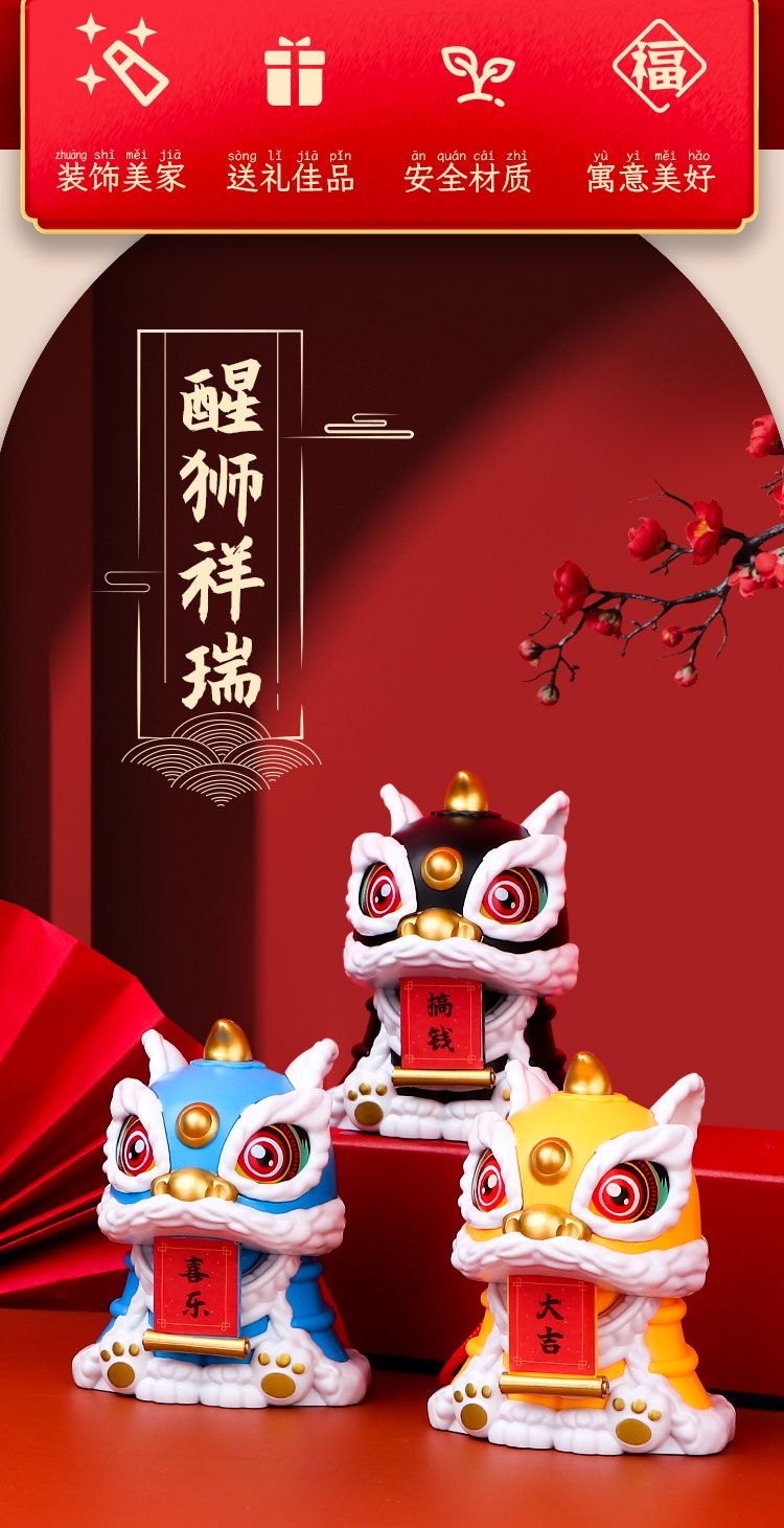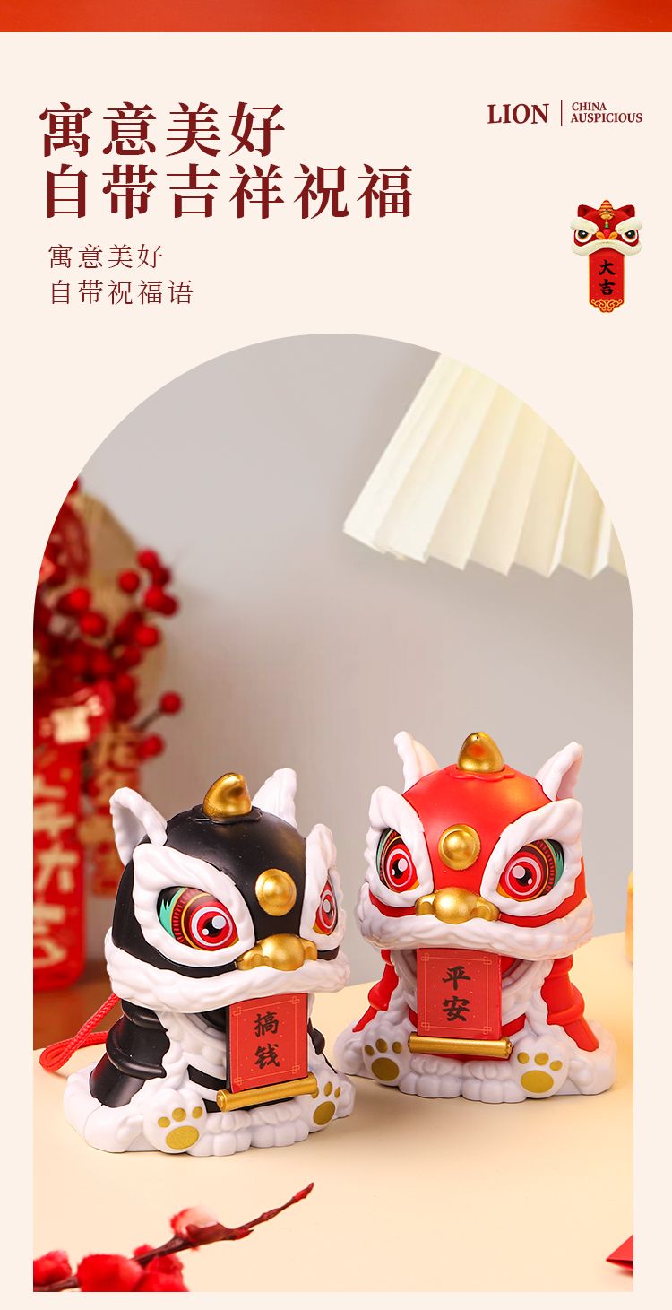 国潮舞龙醒狮玩具吉祥车载摆件招财祥瑞创意礼品