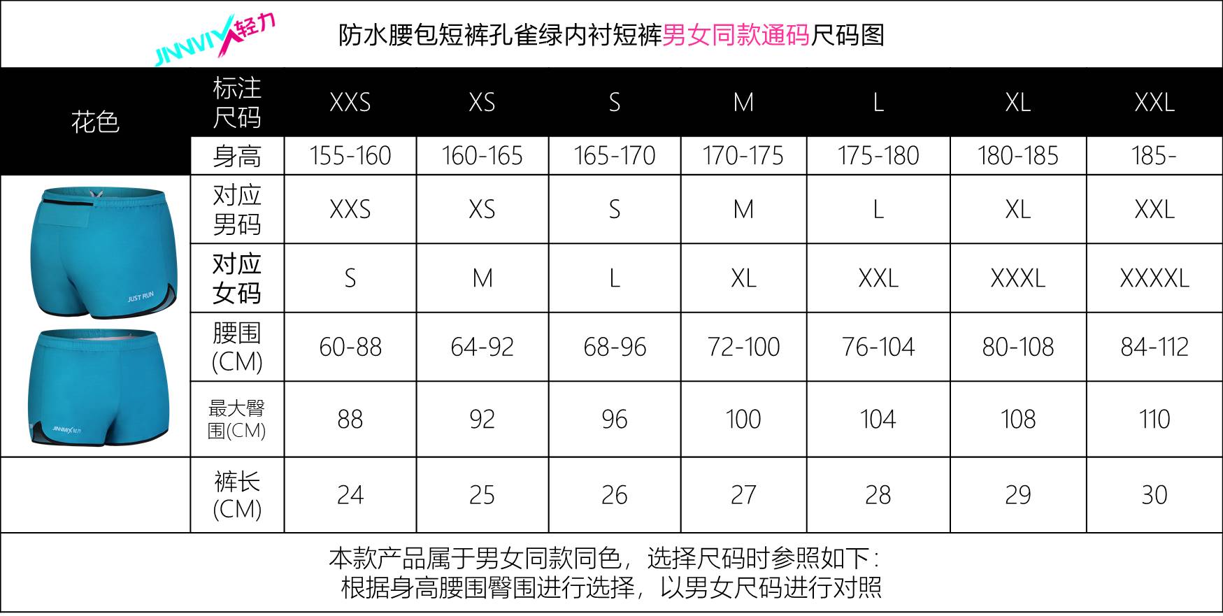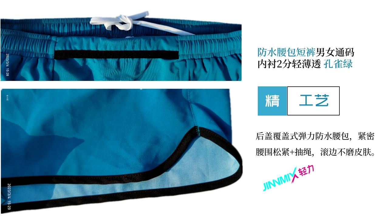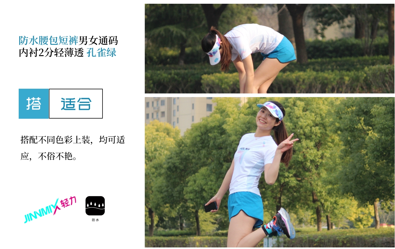 【专业级】JINNMIX轻力防水腰包内衬运动短裤男女通码 孔雀绿