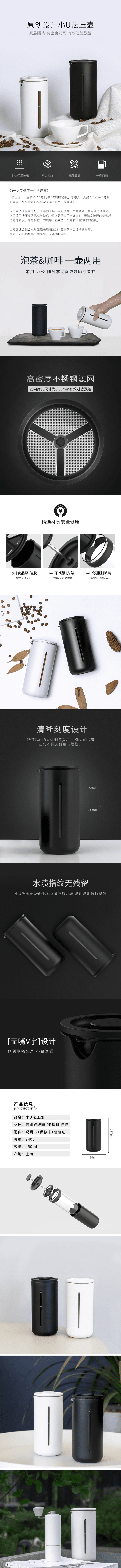 泰摩 小U法压壶 法式家用耐热玻璃咖啡机 手冲过滤咖啡器具 450ML
