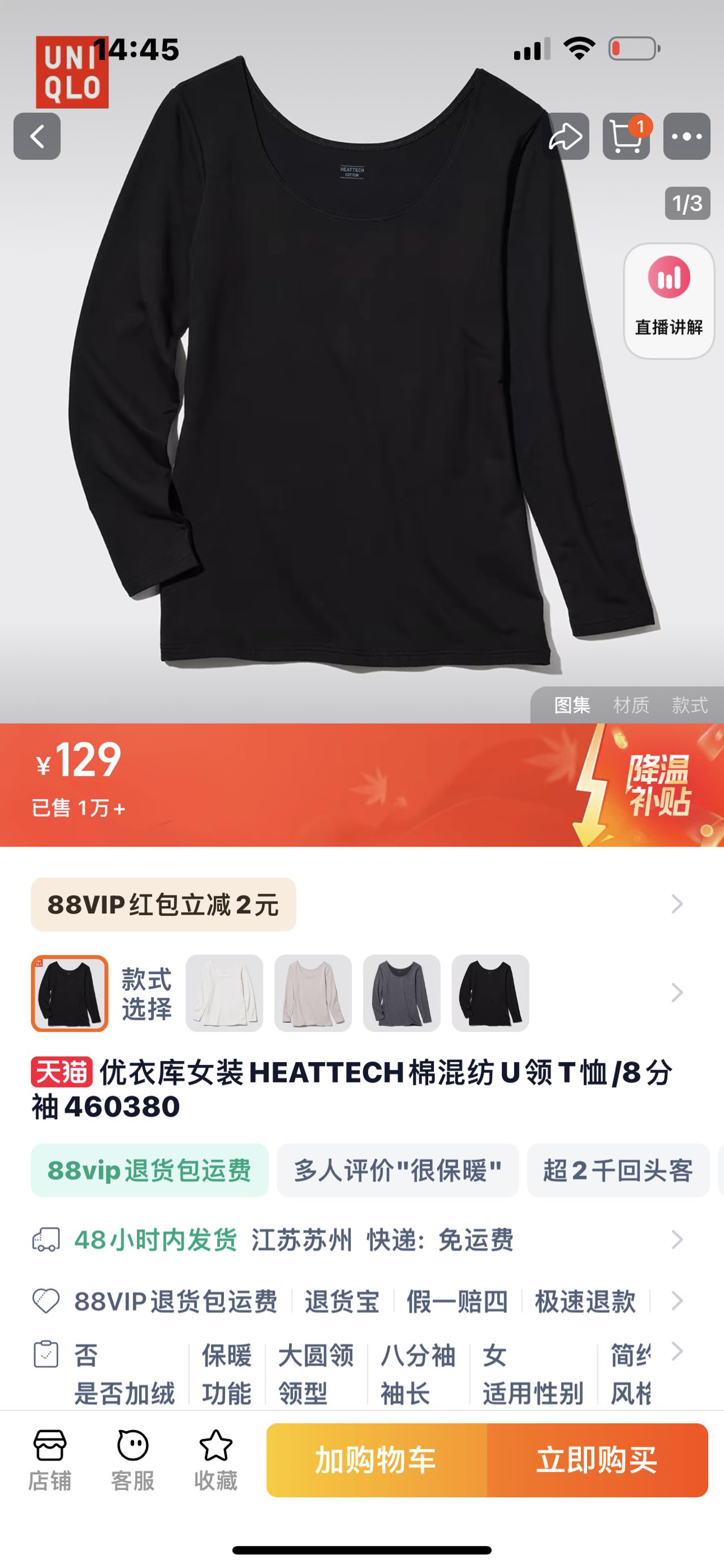 优衣库 原厂 纯原面料 heattech 自发热女款家居服套装