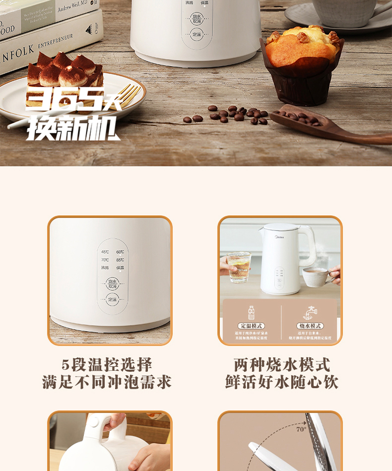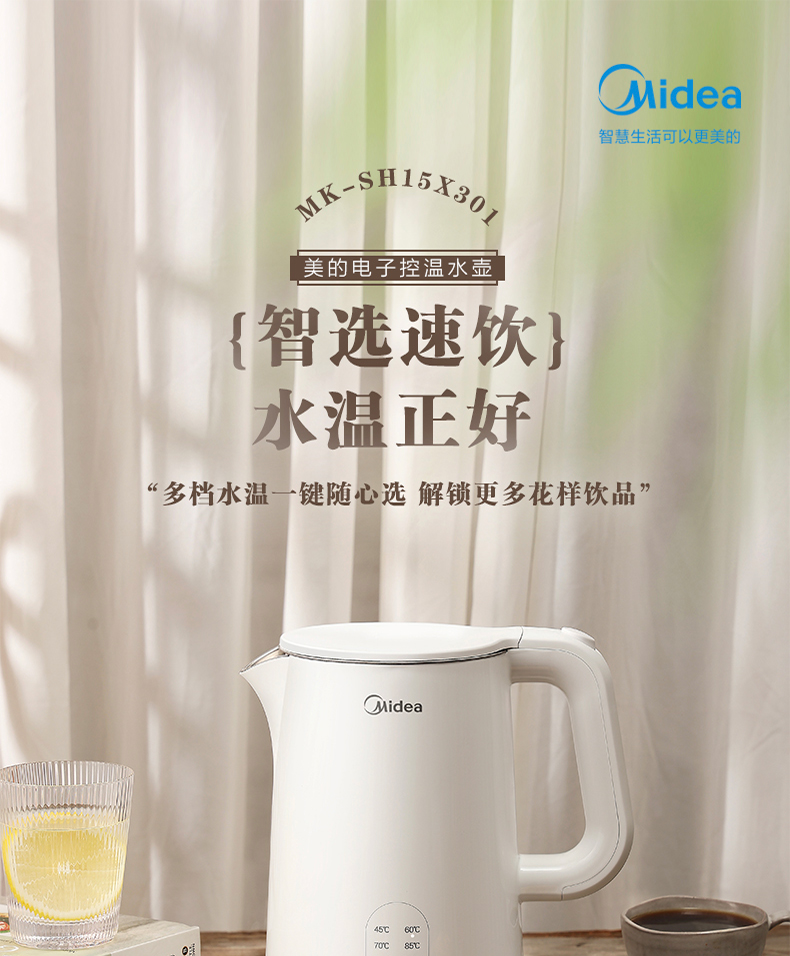 Midea/美的 全智能恒温家用泡茶烧水壶保温不锈钢开水壶SH15X301