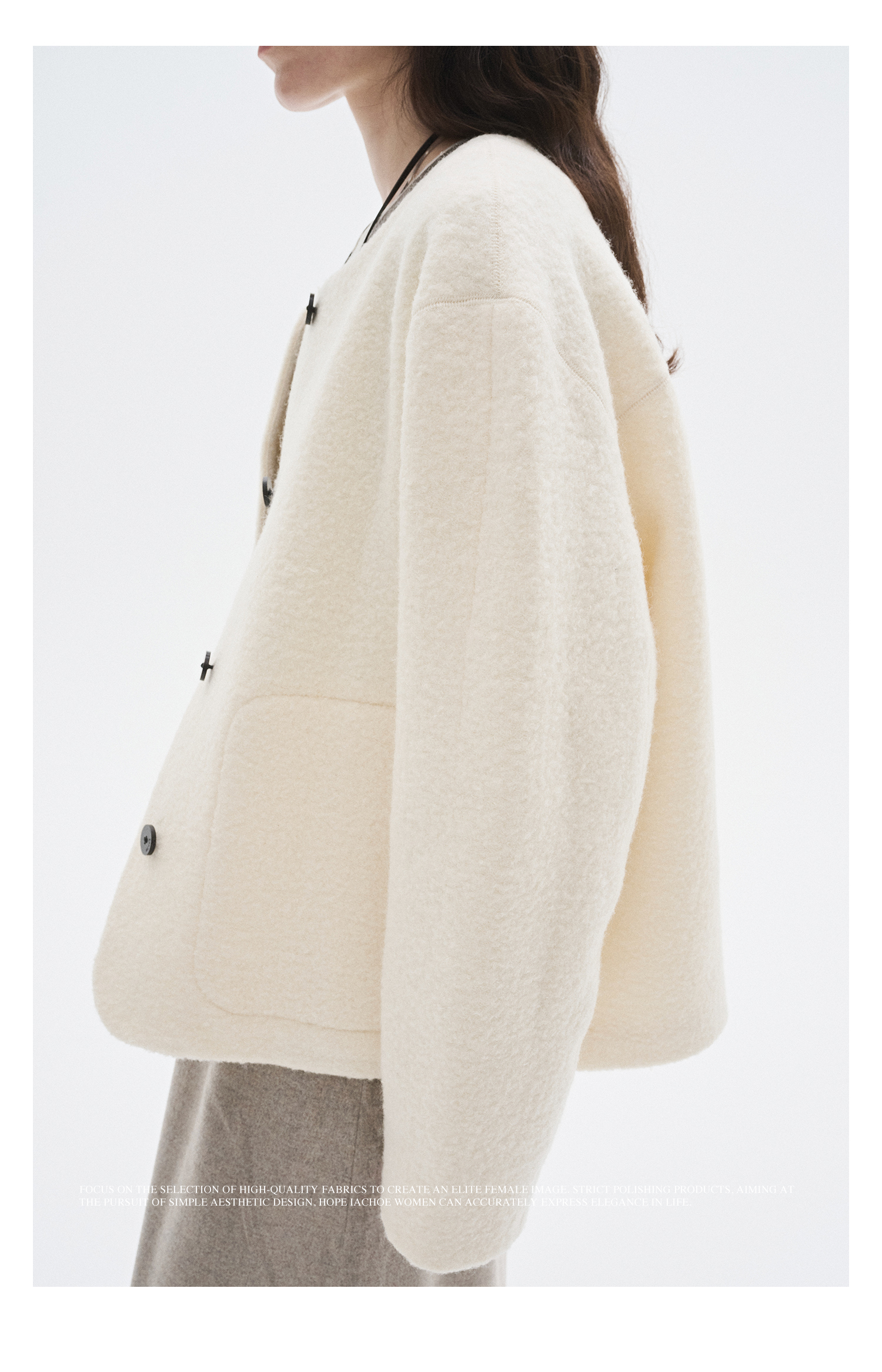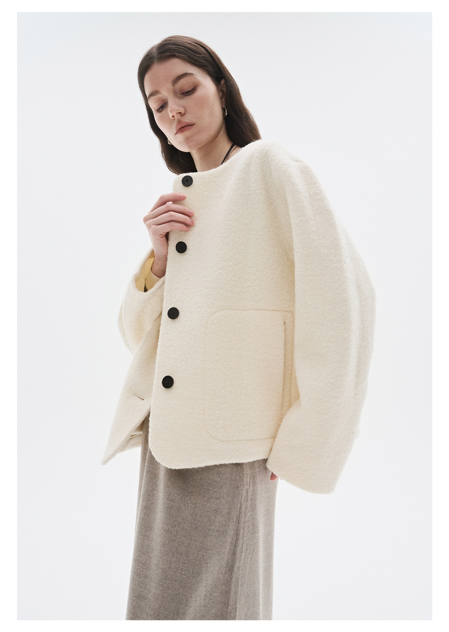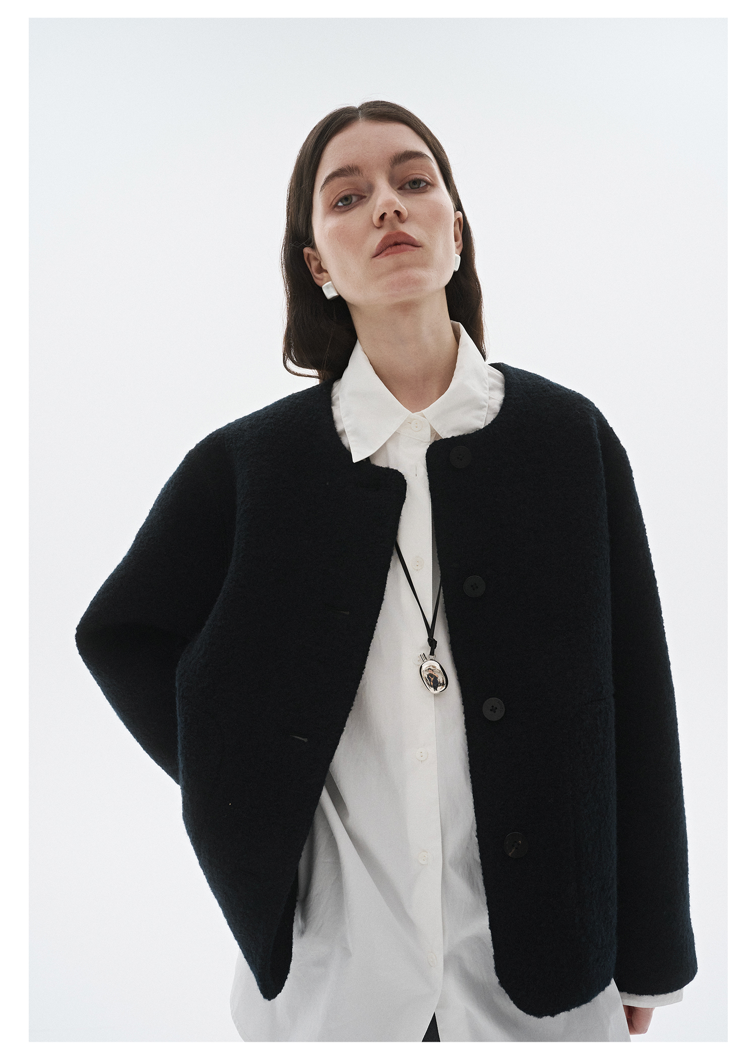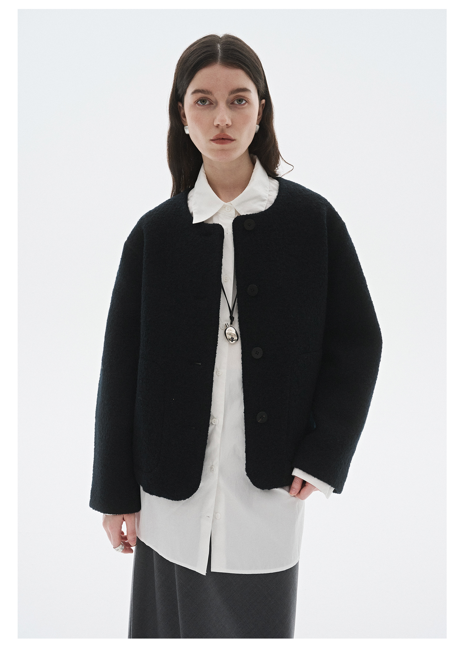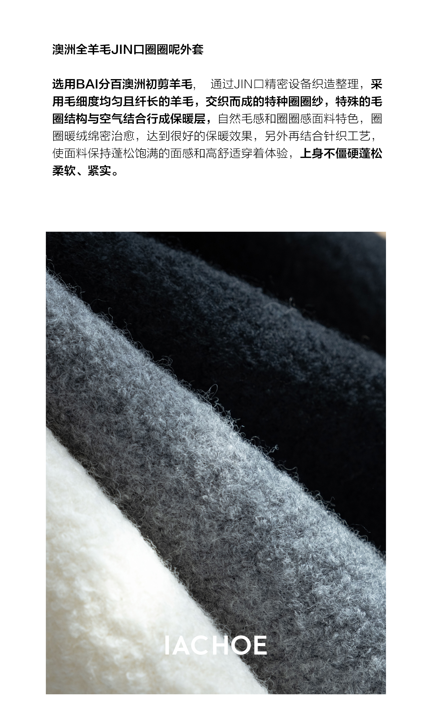 棉仓3561566002-秋冬新款澳洲jin口三色圈圈羊毛呢外套 通勤保暖短外套