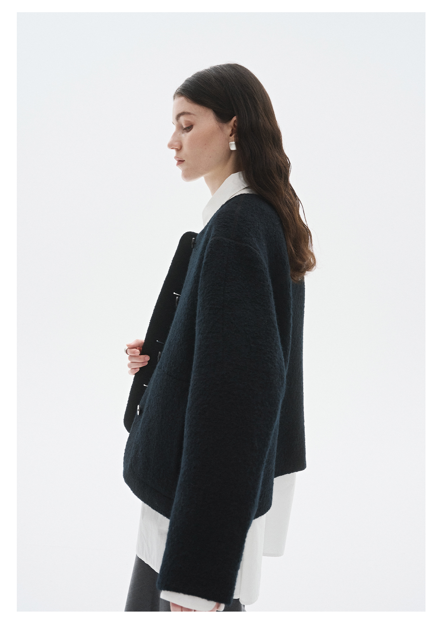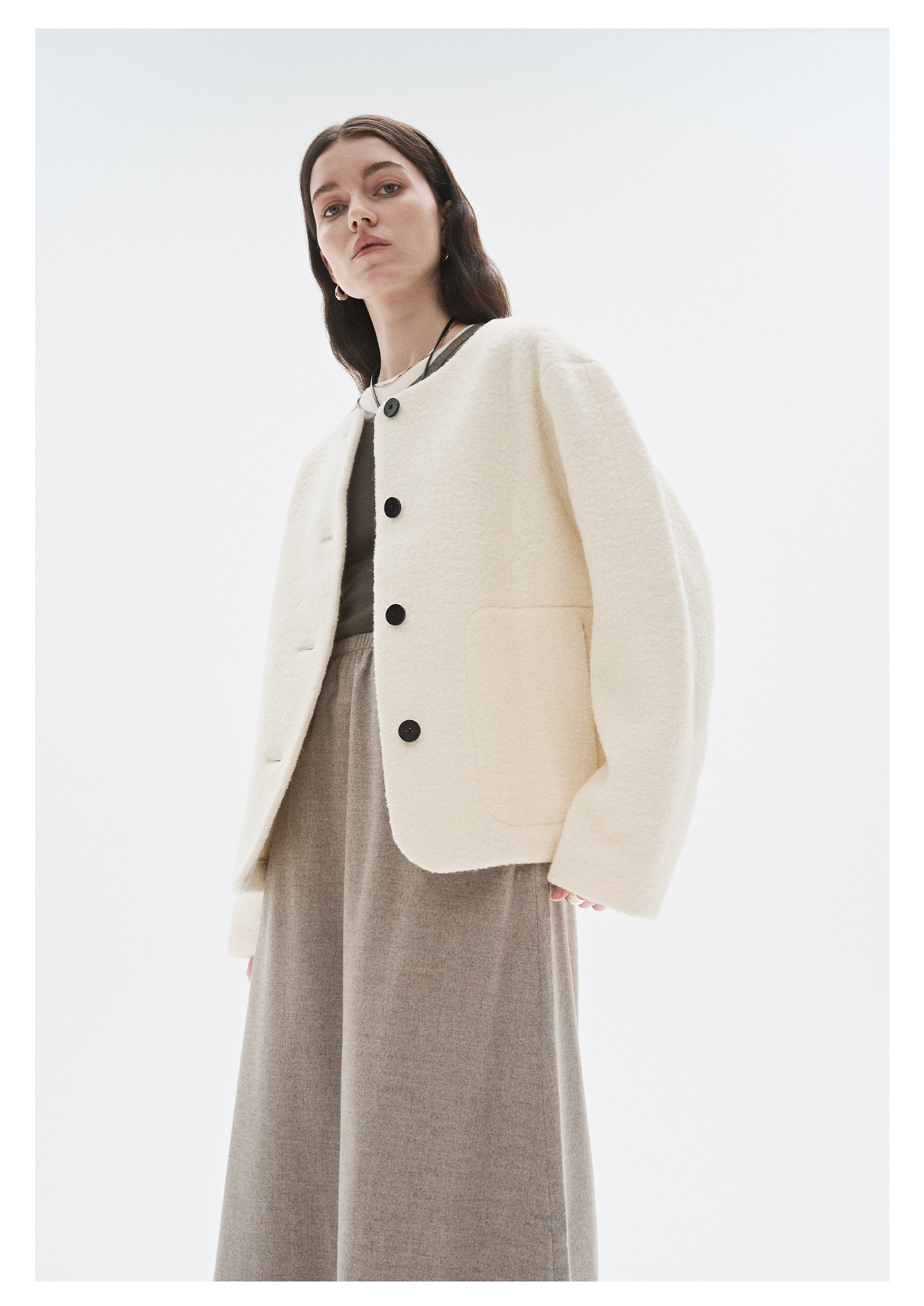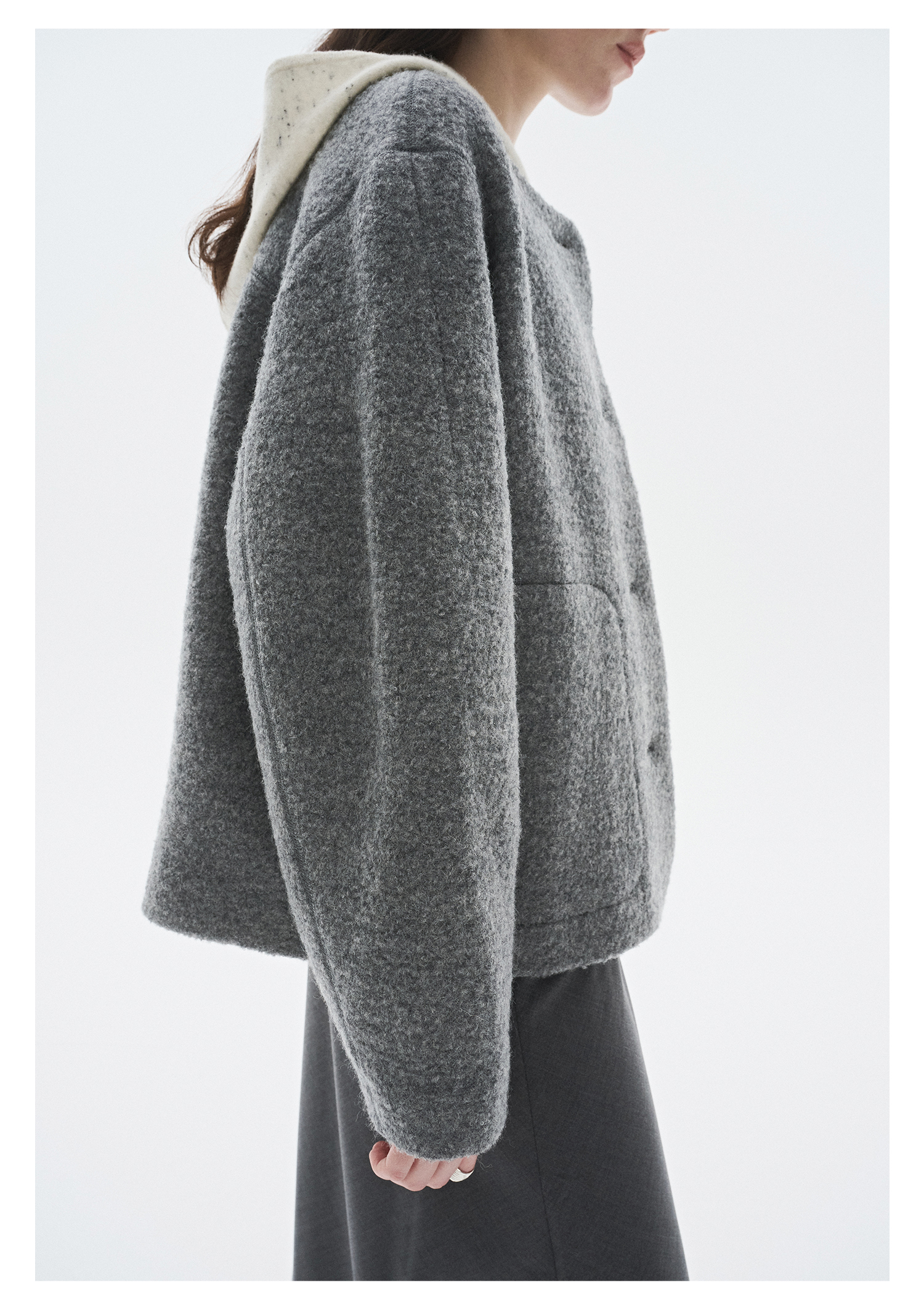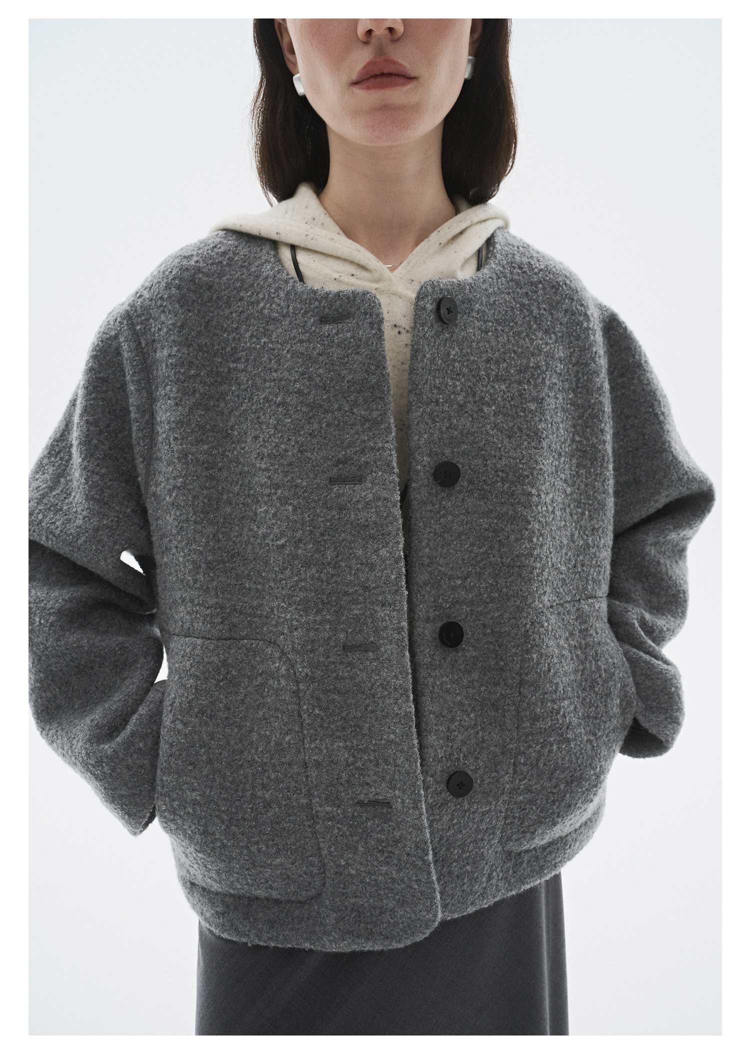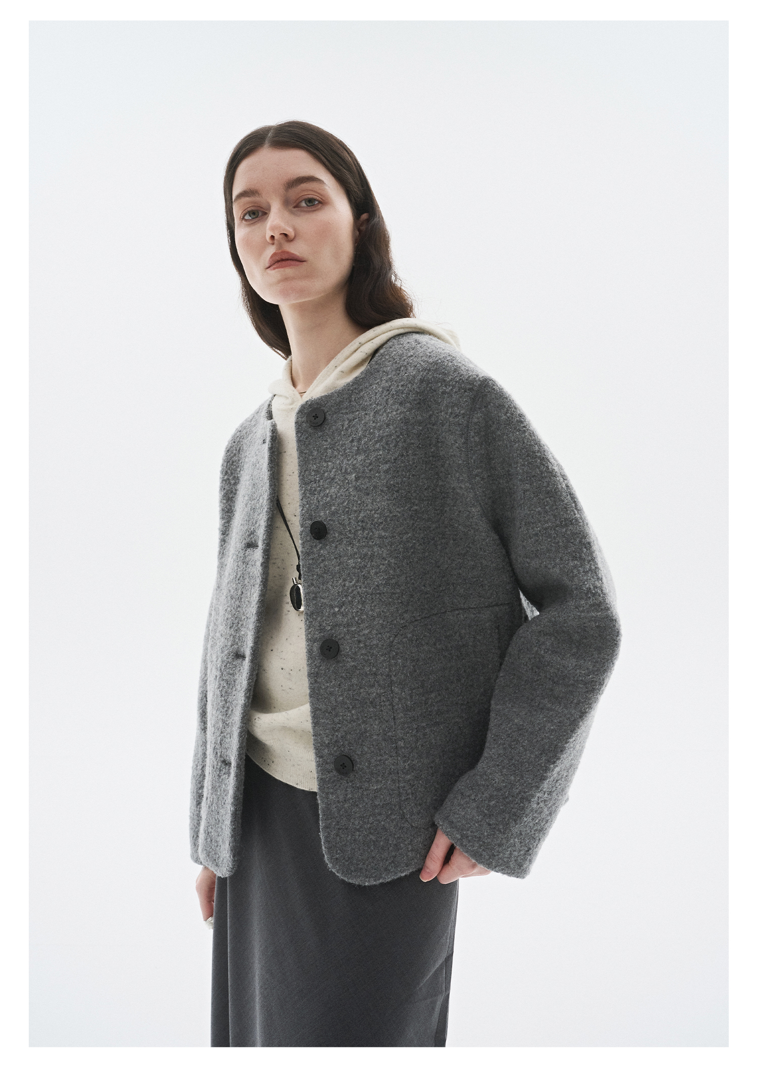 棉仓3561566002-秋冬新款澳洲jin口三色圈圈羊毛呢外套 通勤保暖短外套