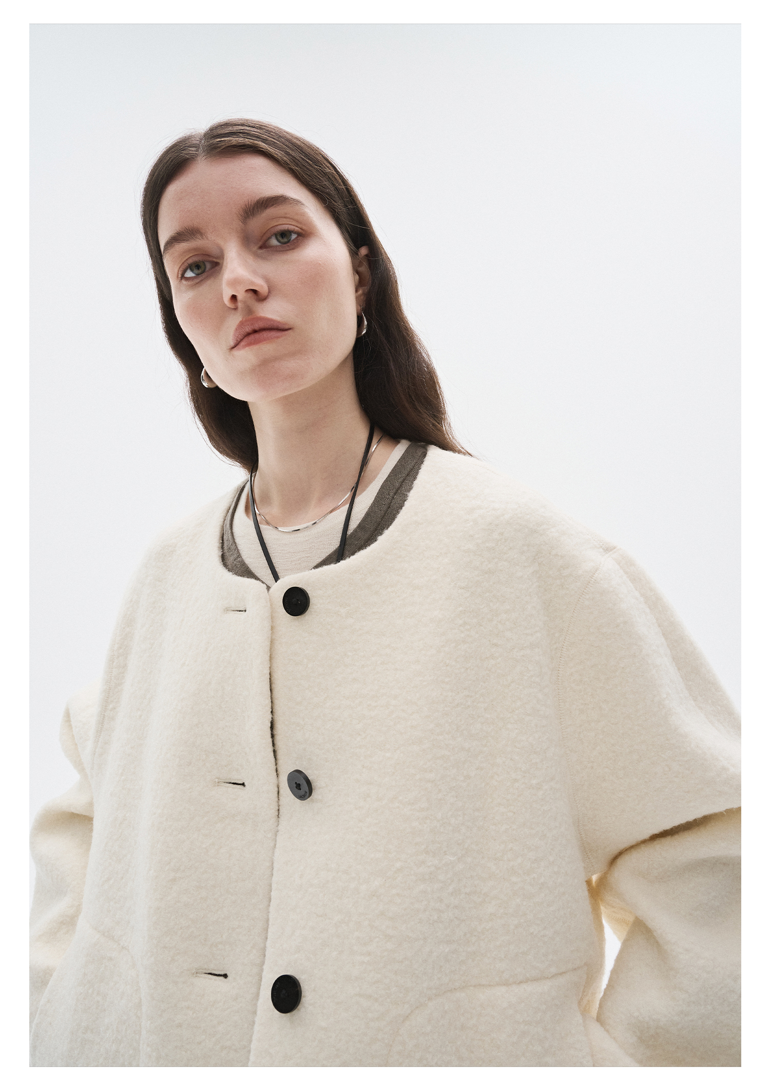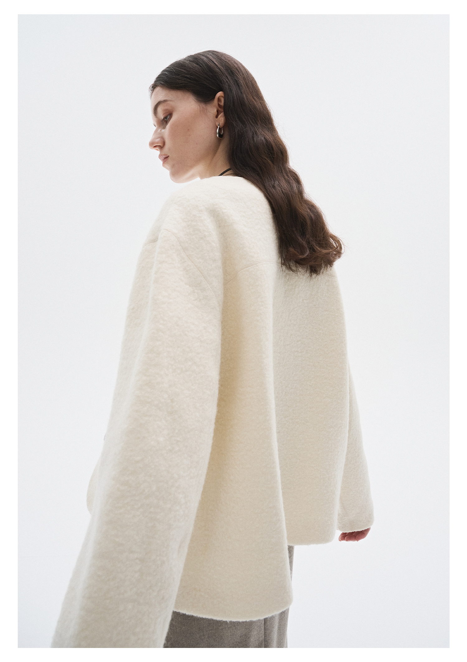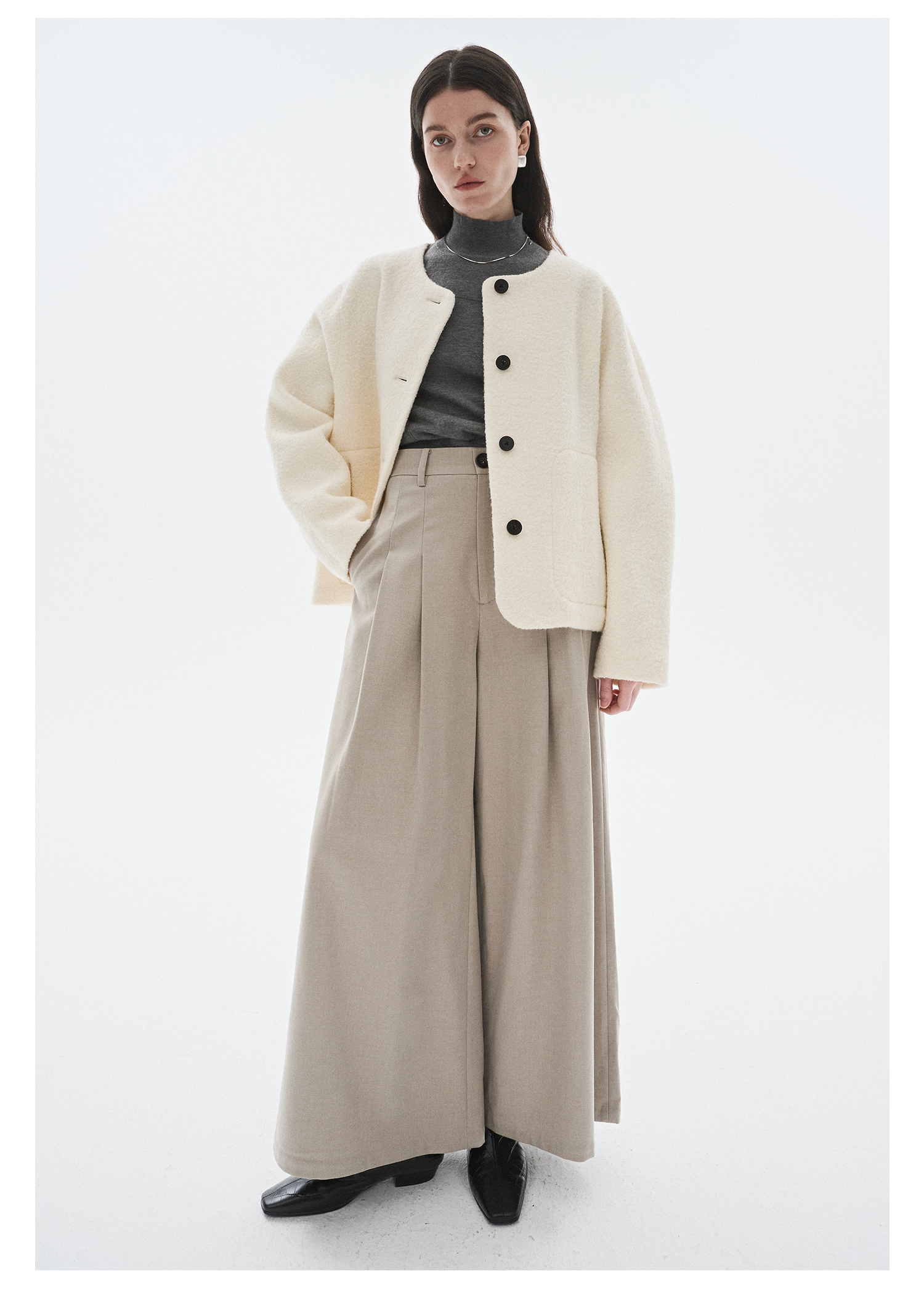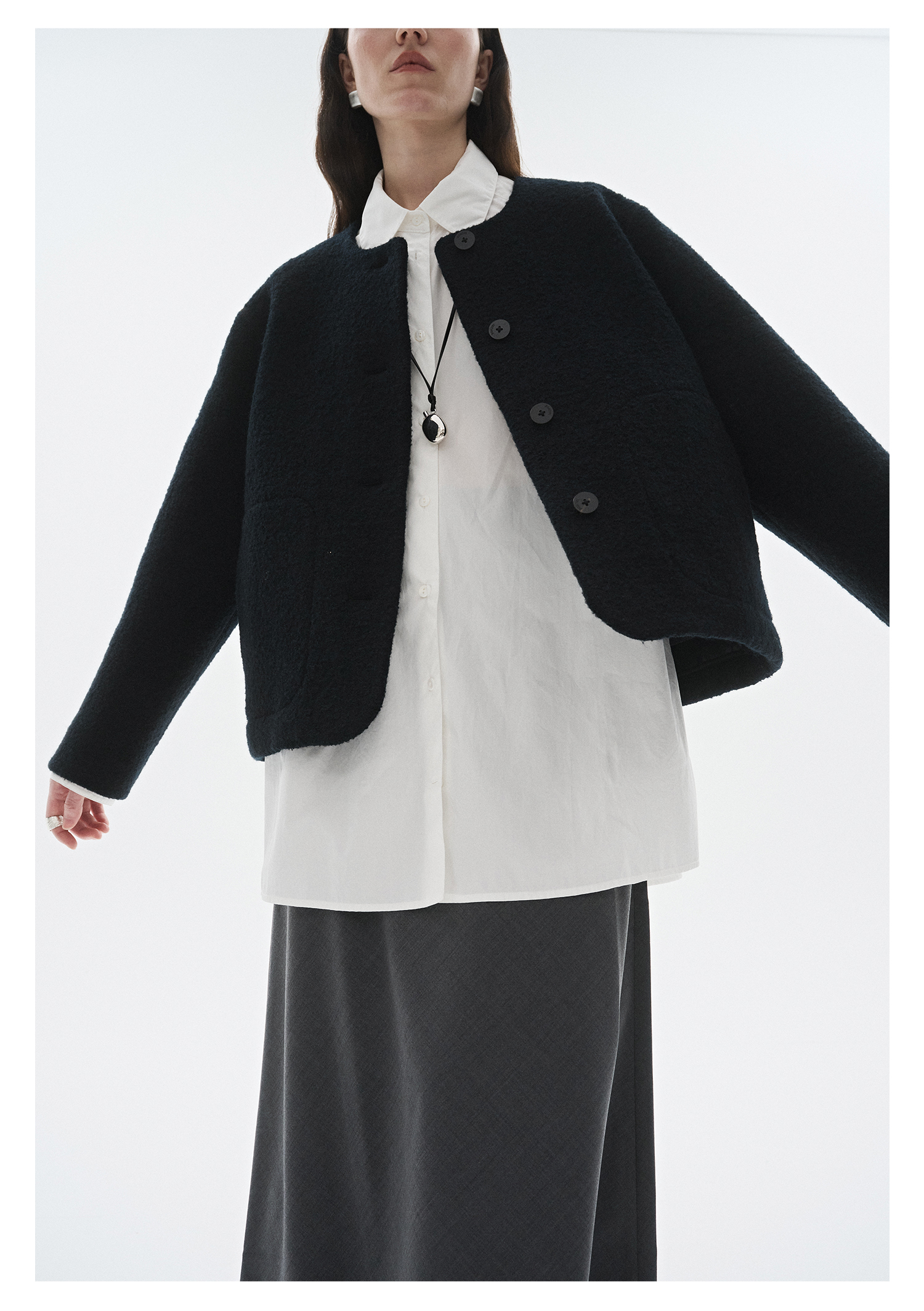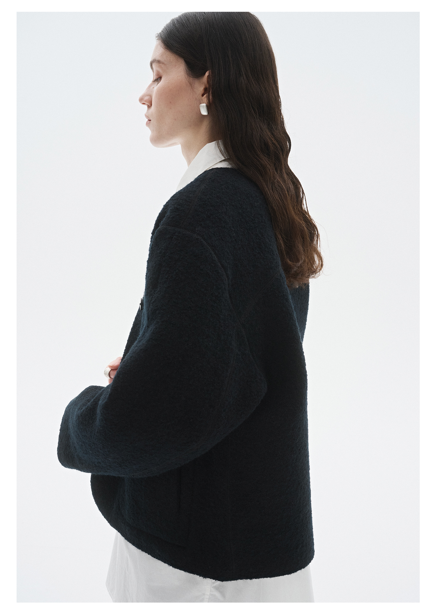 棉仓3561566002-秋冬新款澳洲jin口三色圈圈羊毛呢外套 通勤保暖短外套