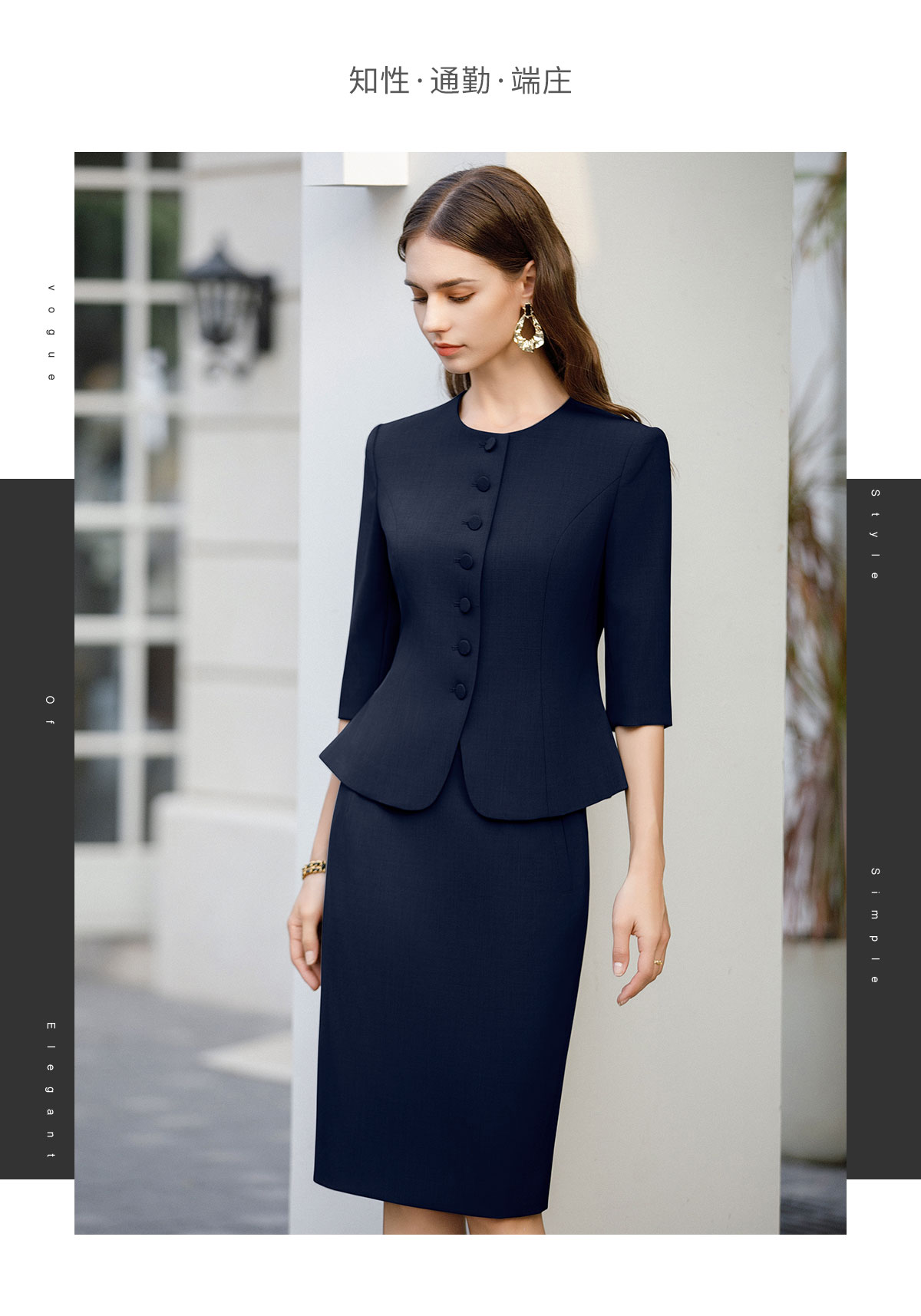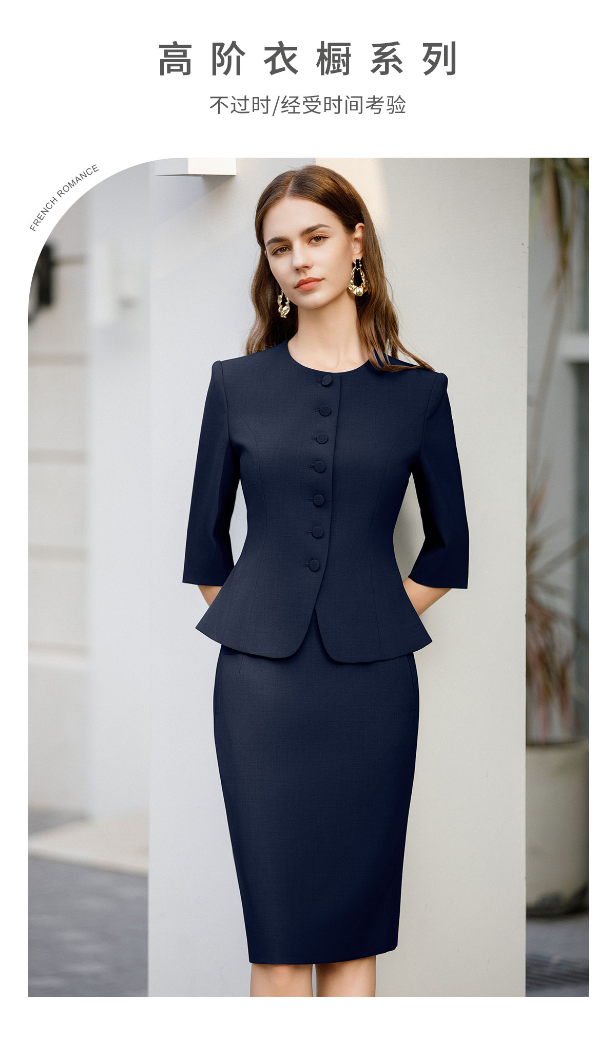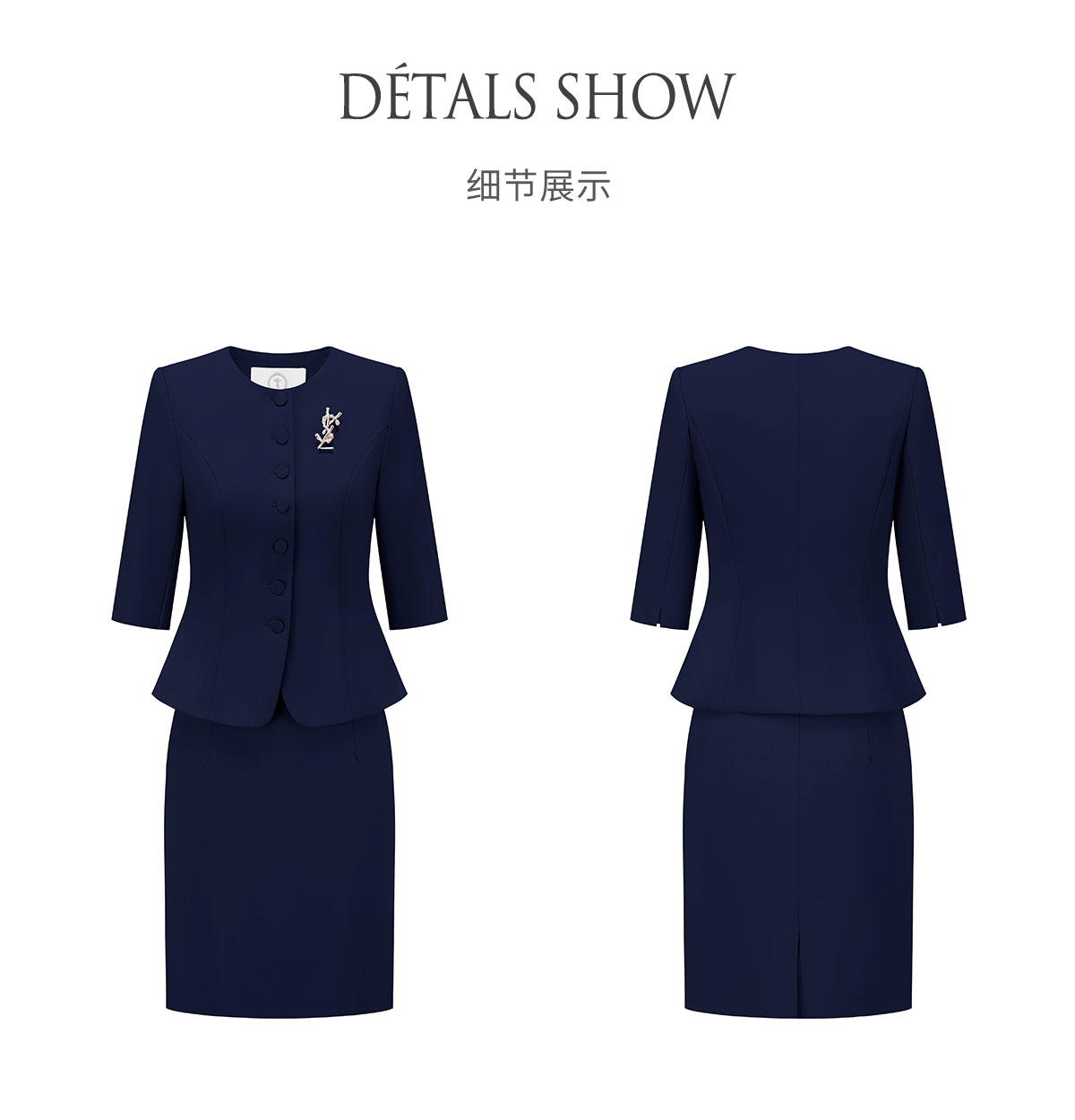 AD高端售楼部工装女案场客服工作服春夏新款藏青色西装套装职业装