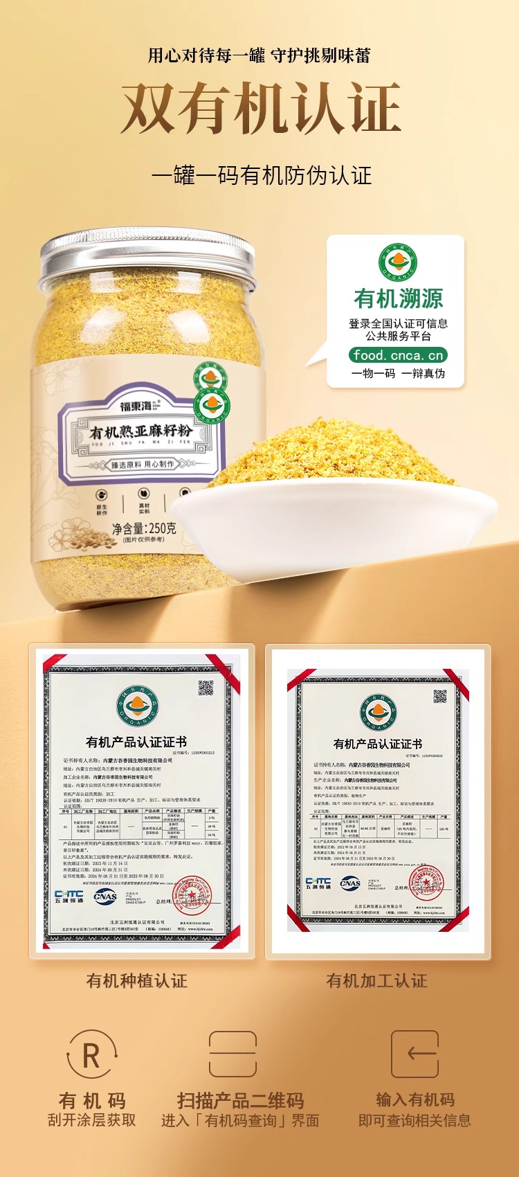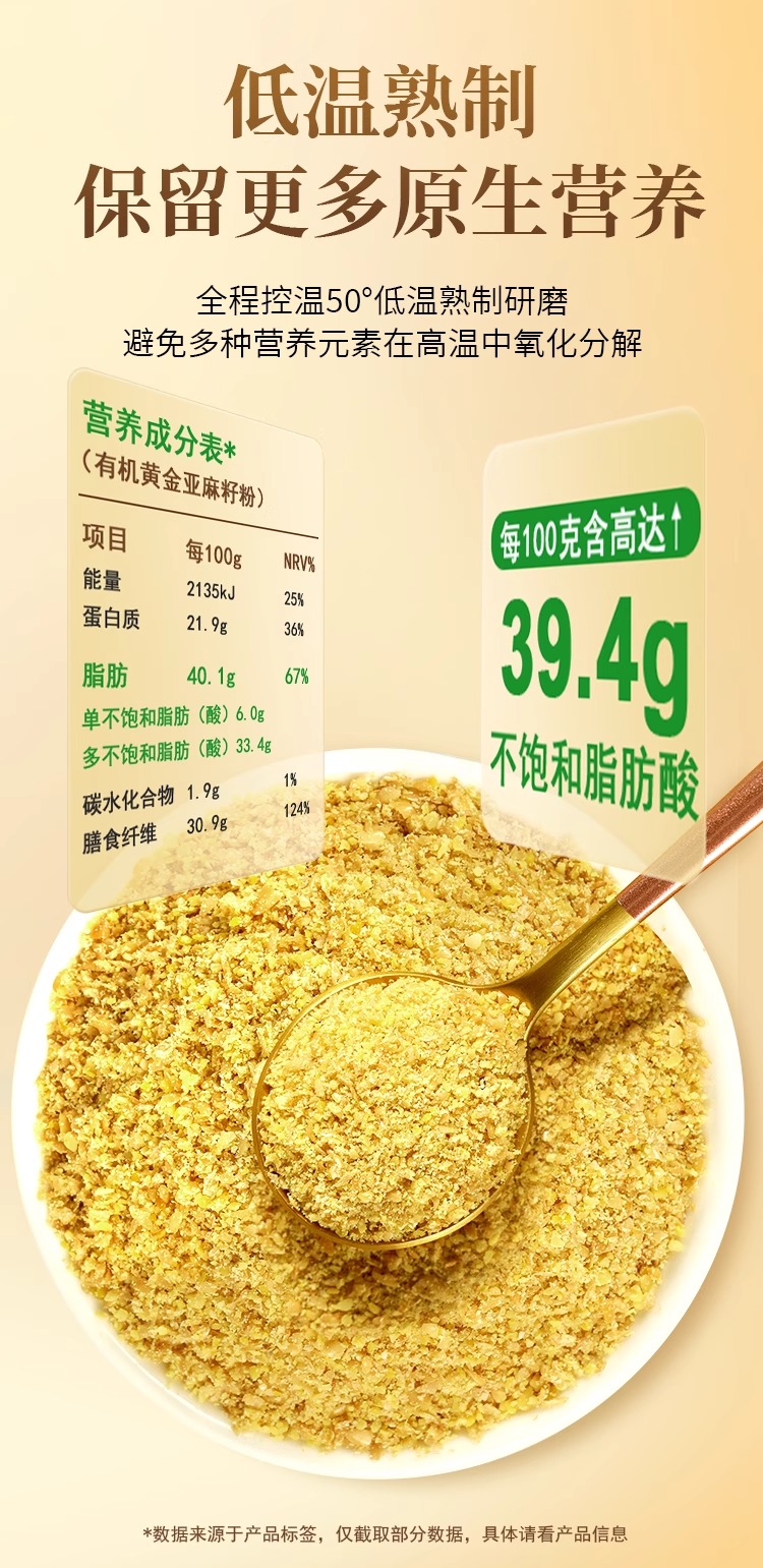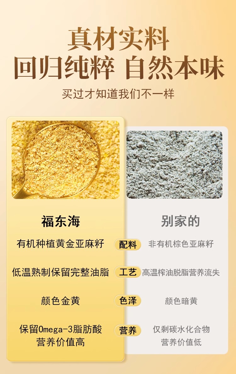 福东海 有机熟亚麻籽粉250克 内蒙古金色亚麻籽双认证 低温烘焙即食高纤