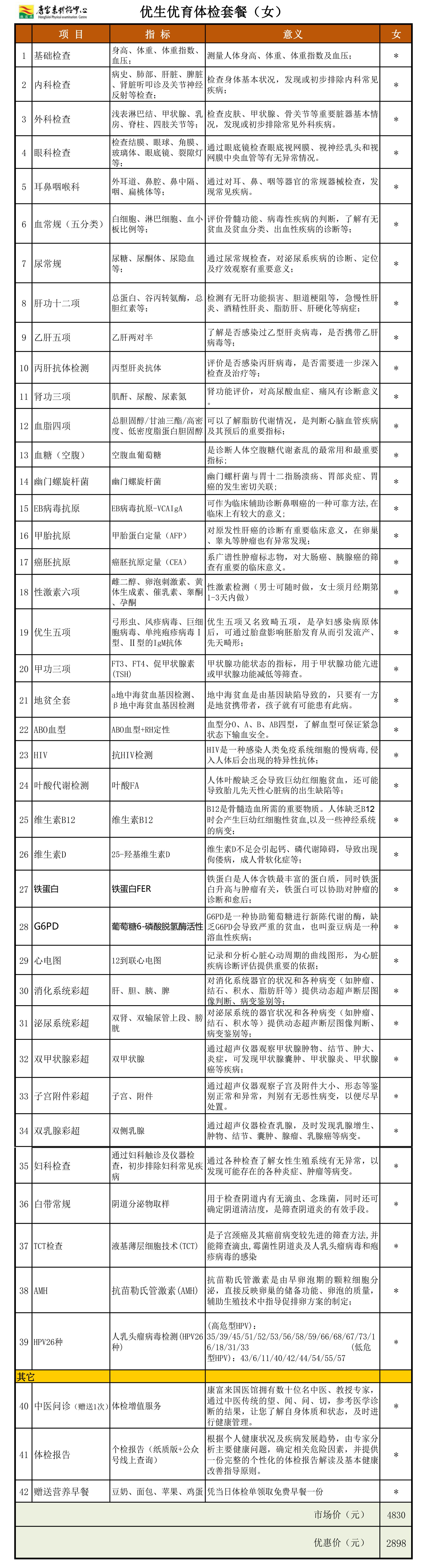 优生优育体检套餐(女)
