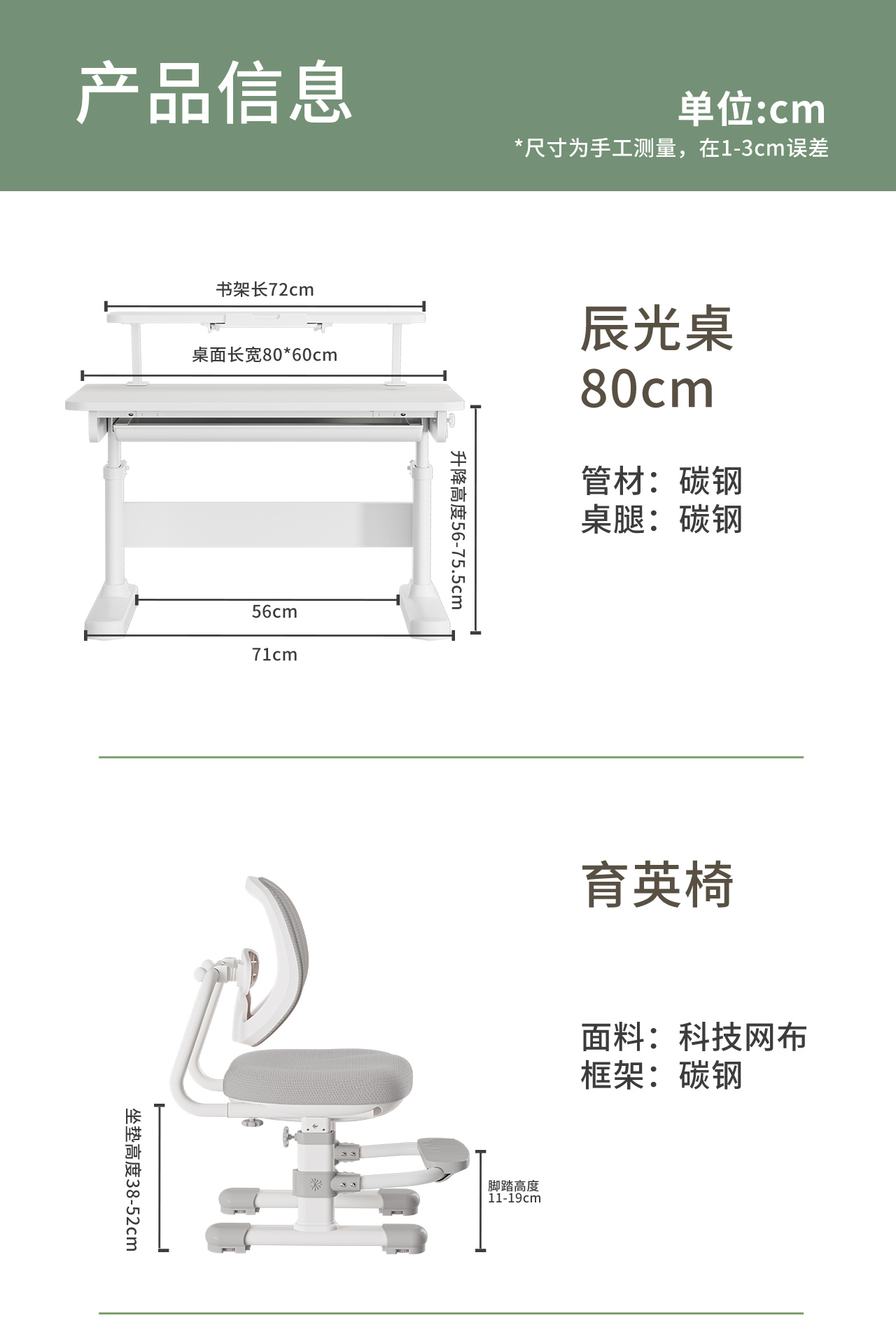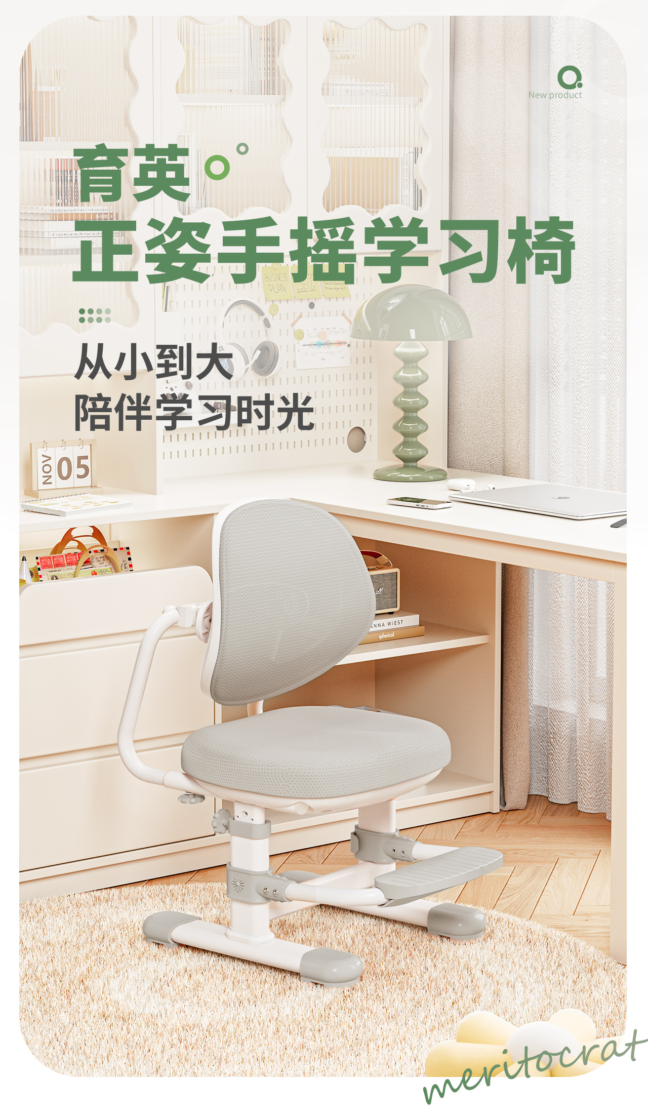 【普象专属】青节儿童学习桌椅可升降矫正坐姿座椅