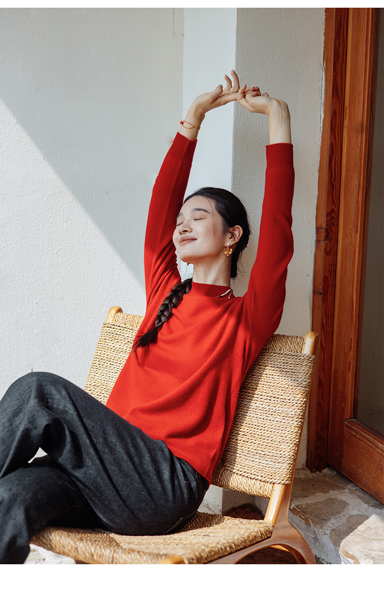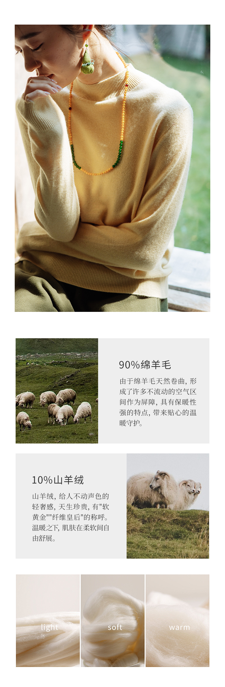 绽放810朵/空气感羊毛羊绒打底衫柔软舒适半高领毛衣套头针织衫