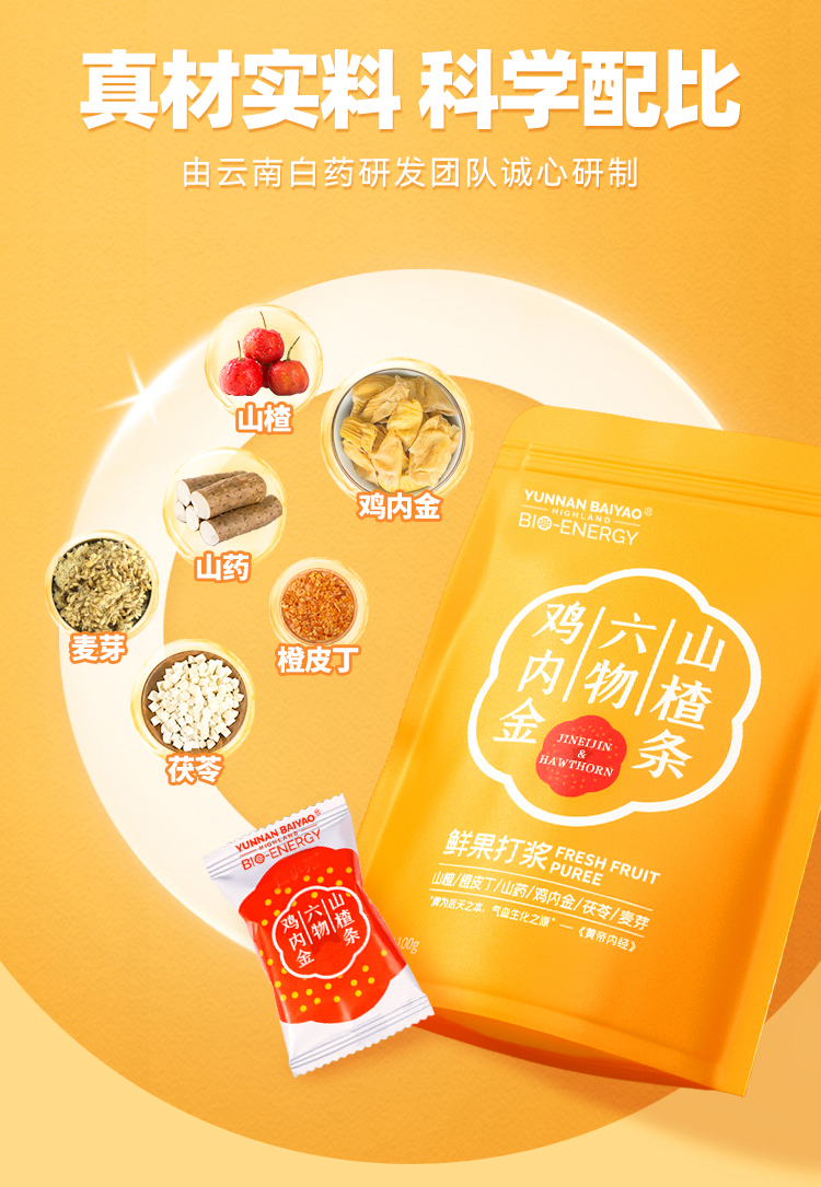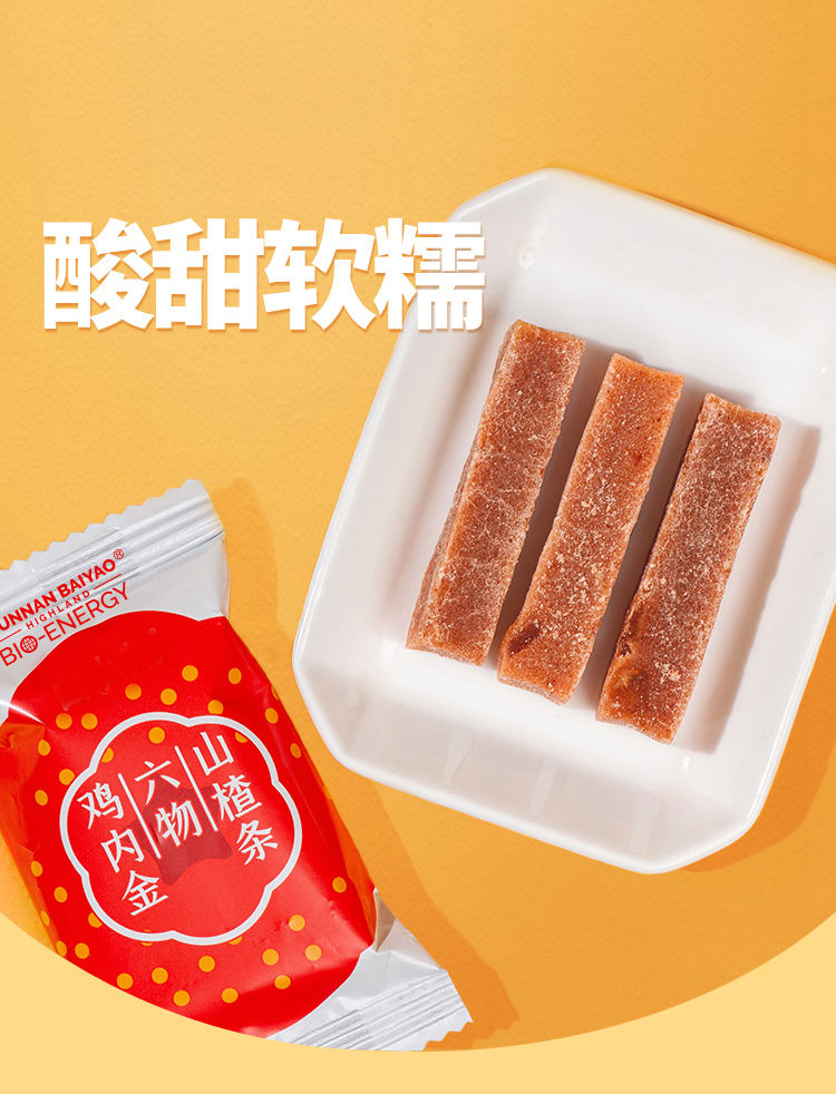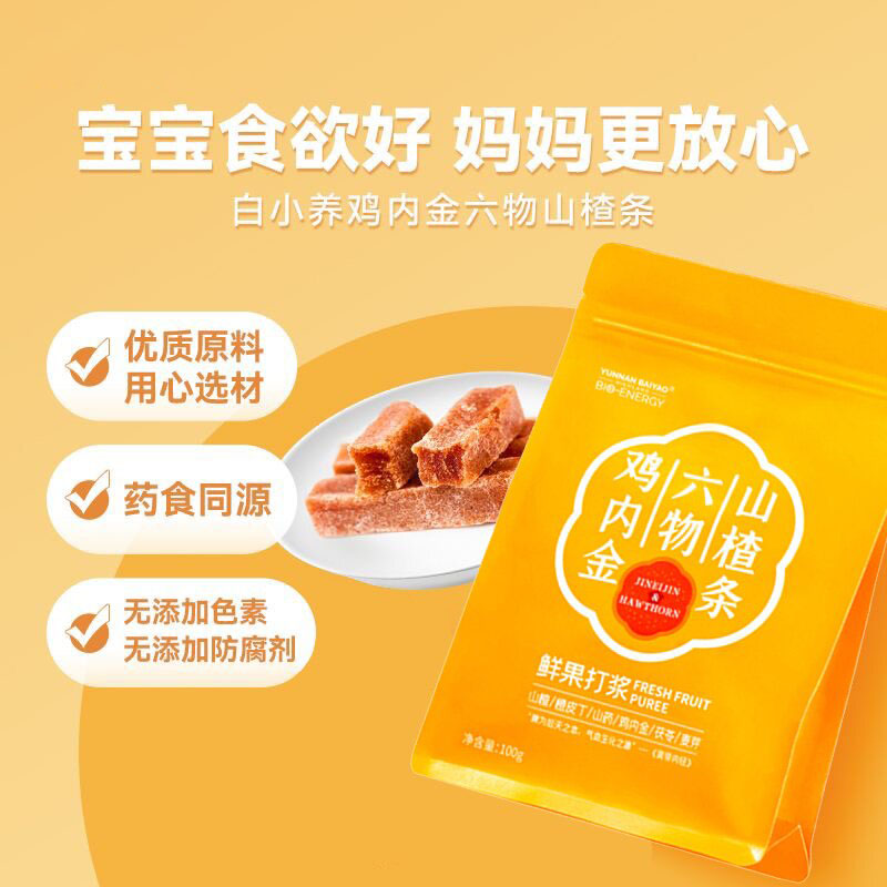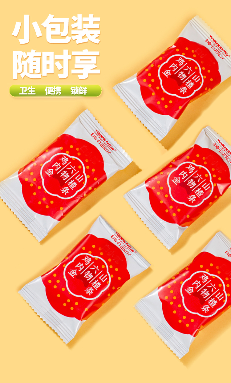 【品名】【超值4包装】BIO云南白药鸡内金六物山楂条 鲜果制作 酸甜口味 独立包装 100g*4袋 【规格】100g*4袋 【产地】国内 【保质期】12个月 【发货包装】独立包装袋 【发货地】云南 【发货快递】中通 【不发货区域】港澳台 【发货时效】48-72小时,周末节假日顺延 【售后说明】食品类不支持7天无理由退换,不支持拒收! |