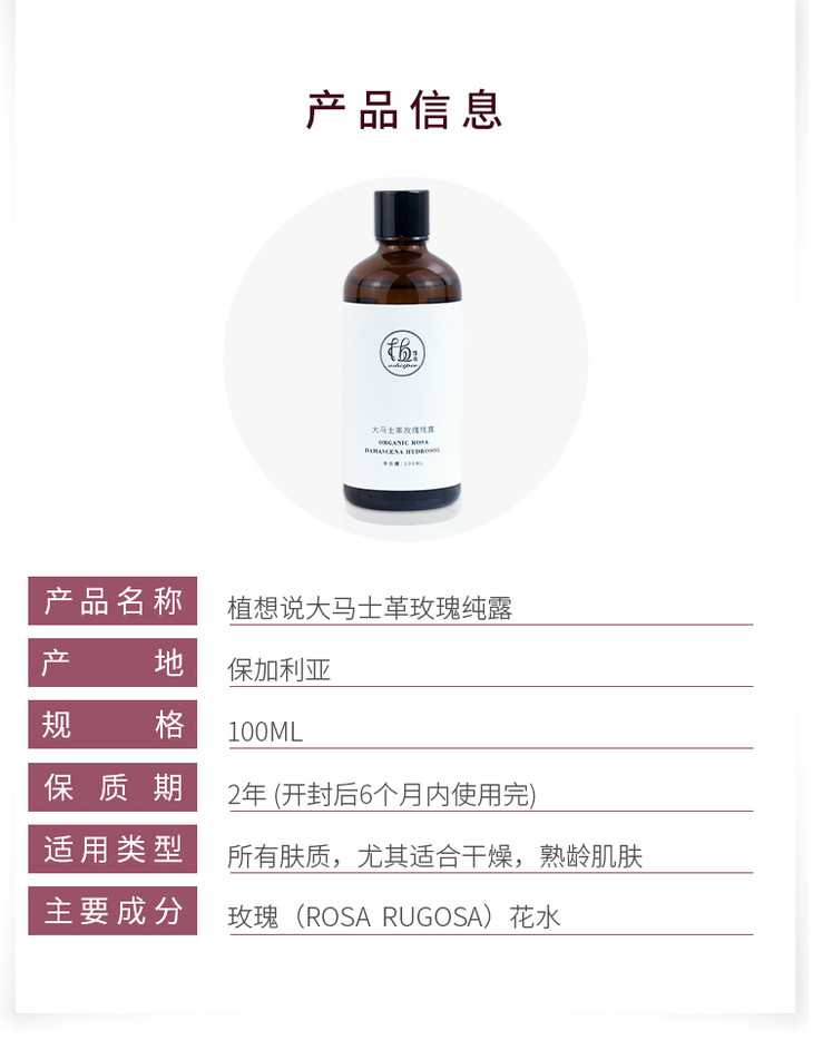 植想说双十二活动【可以喝的玫瑰纯露、无添加】植想说保加利亚玫瑰纯露 保湿补水、提亮肤色、改善暗沉 10000朵玫瑰1瓶纯露