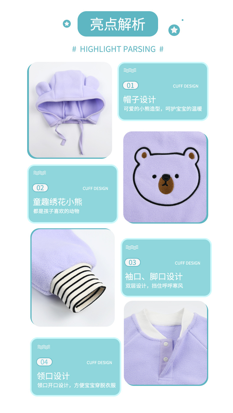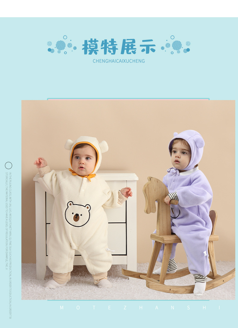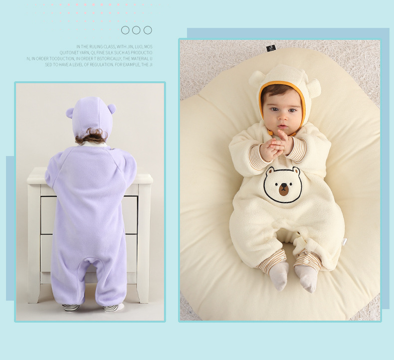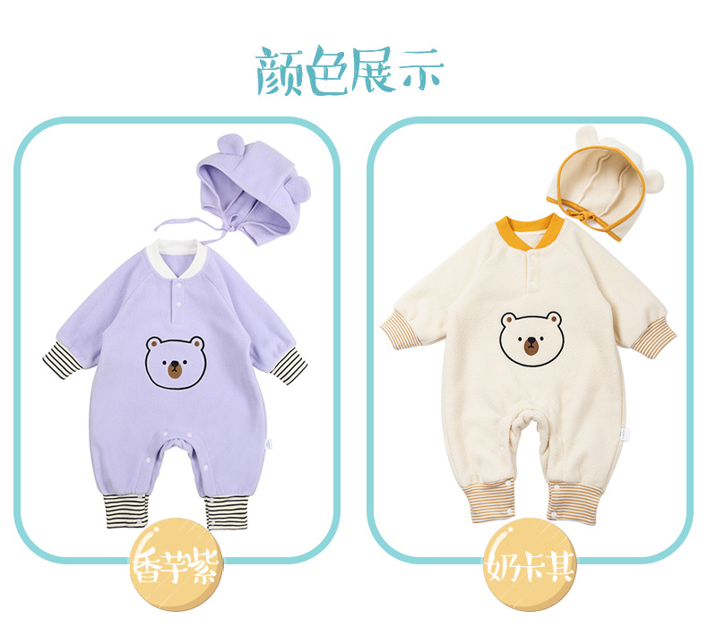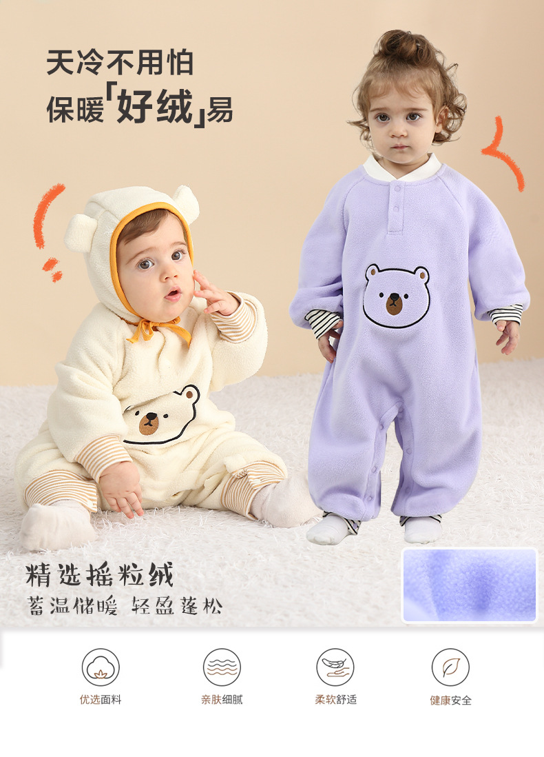 【送帽子~新品尝鲜价!】宝宝连体衣A类新生儿保暖外出服哈衣春秋款摇粒绒小熊婴儿爬爬服