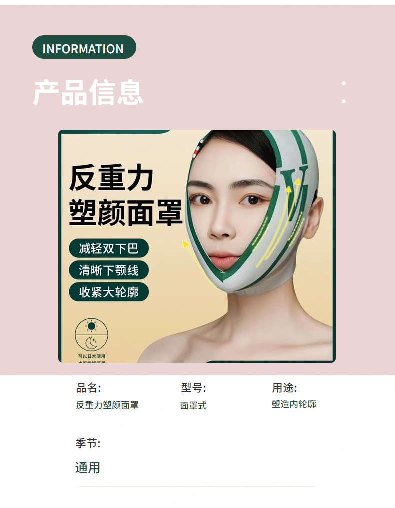 【减轻双下巴!反重力塑颜面罩】提拉V脸带 改善轮麝 清晰下颚线!石墨烯微电流 丝滑肤感面料,亲肤透气 无勒痕设计!提拉紧致法令纹瘦脸神器v脸面罩Y