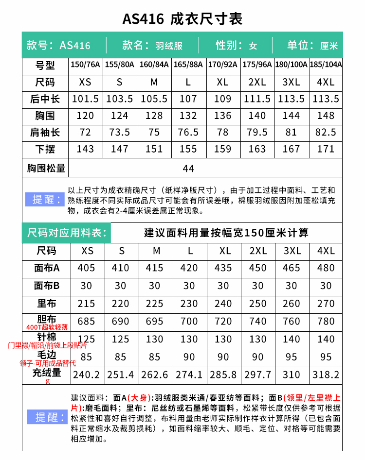 裁缝学苑AS416长款羽绒服纸样女装新款毛领连帽工装鹅绒服外套样板