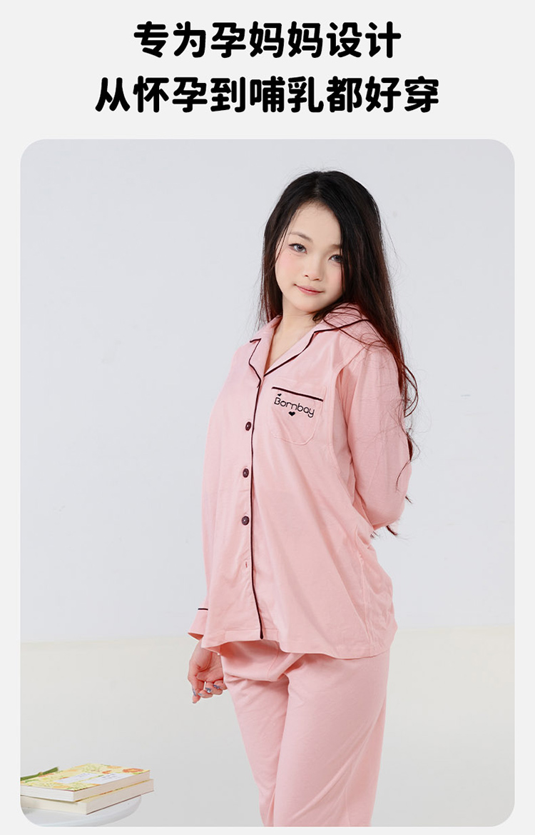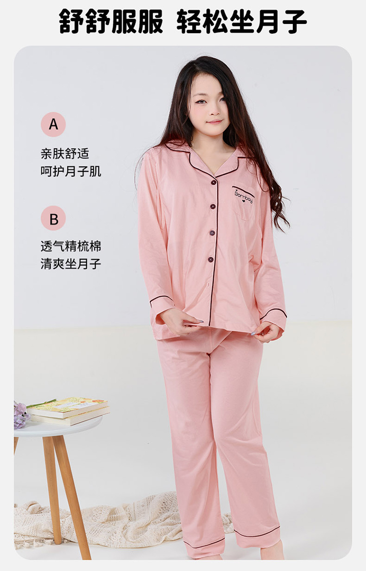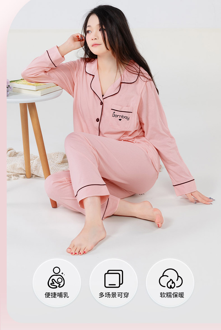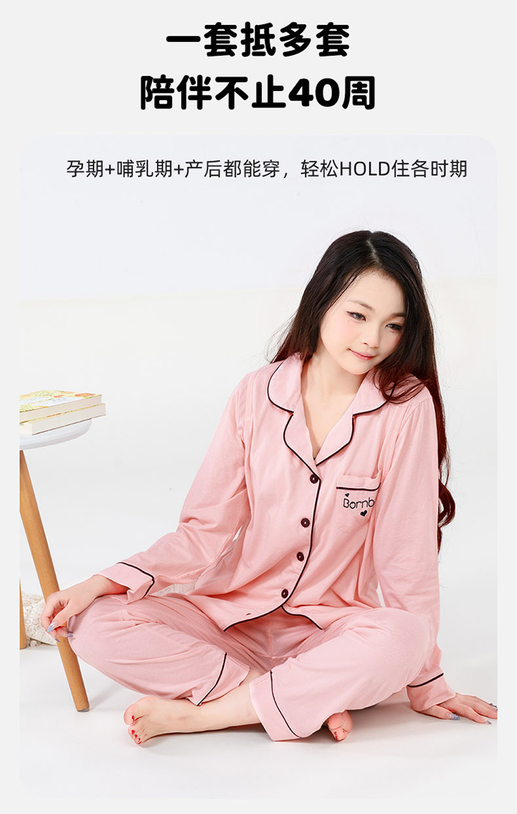 贝贝怡便捷哺乳可调腰月子服春秋新款孕产两穿家居服舒弹孕妇两件套ZB3DY001