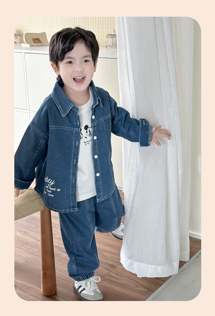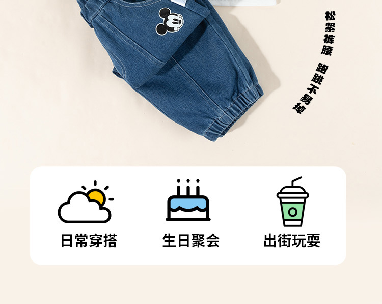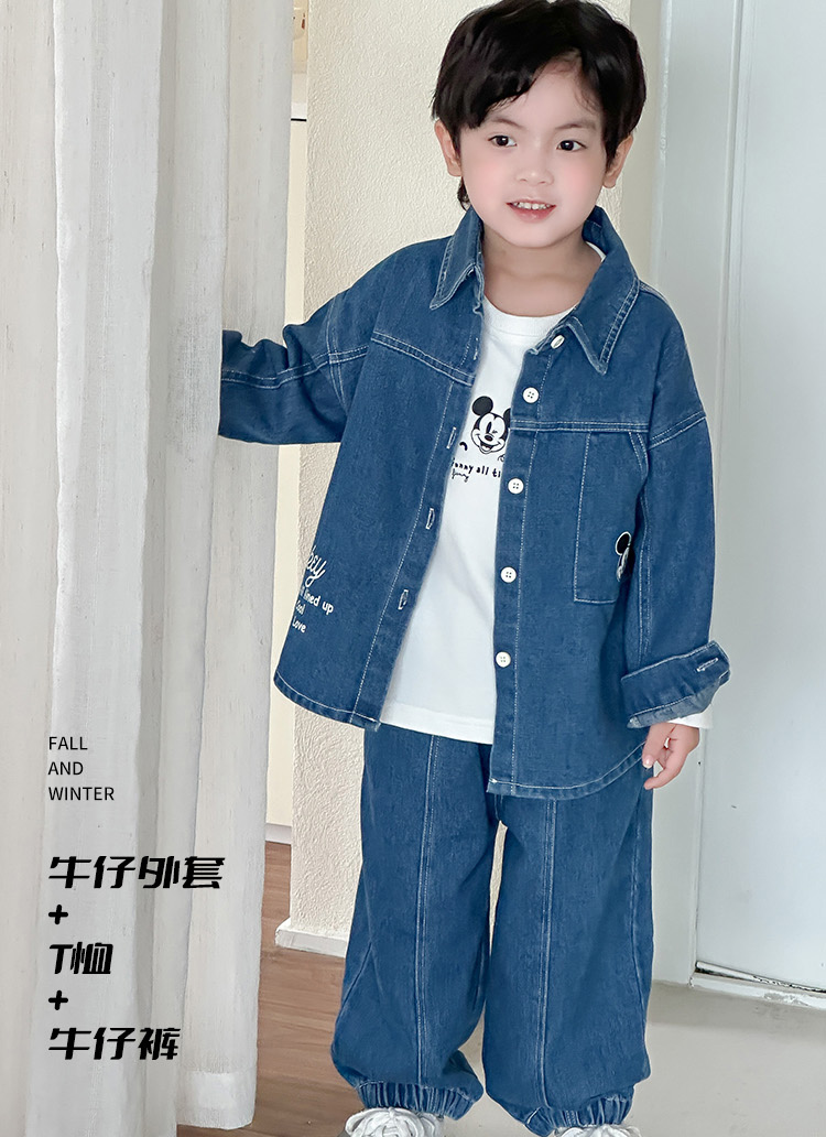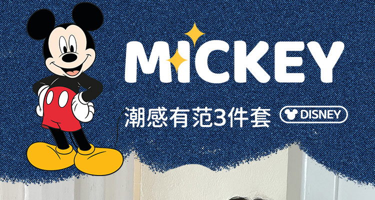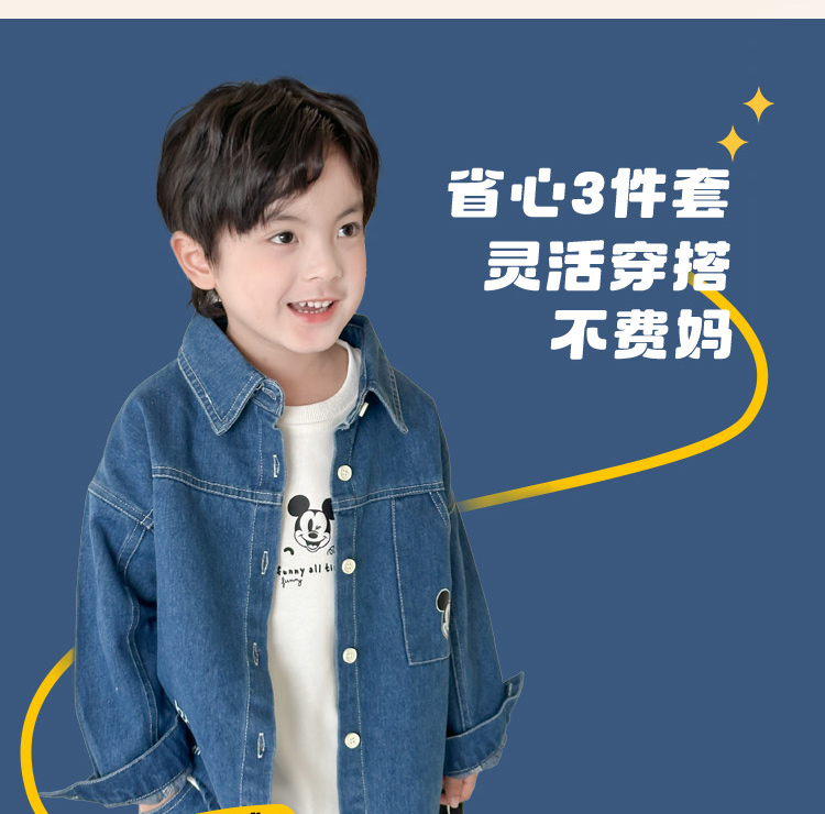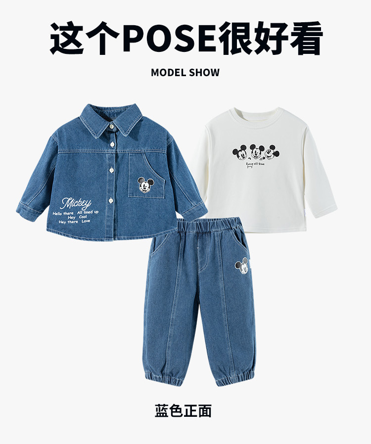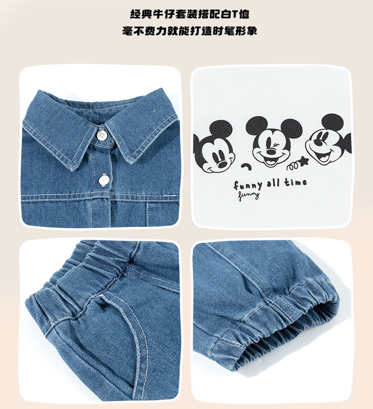 迪士尼【牛仔休闲风】25春季新款米奇印花外套内搭T恤束脚长裤三件套ZD3DT044