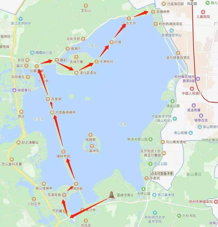 断腿式游玩西湖路线: