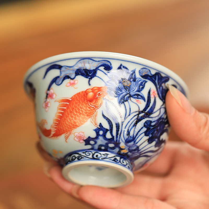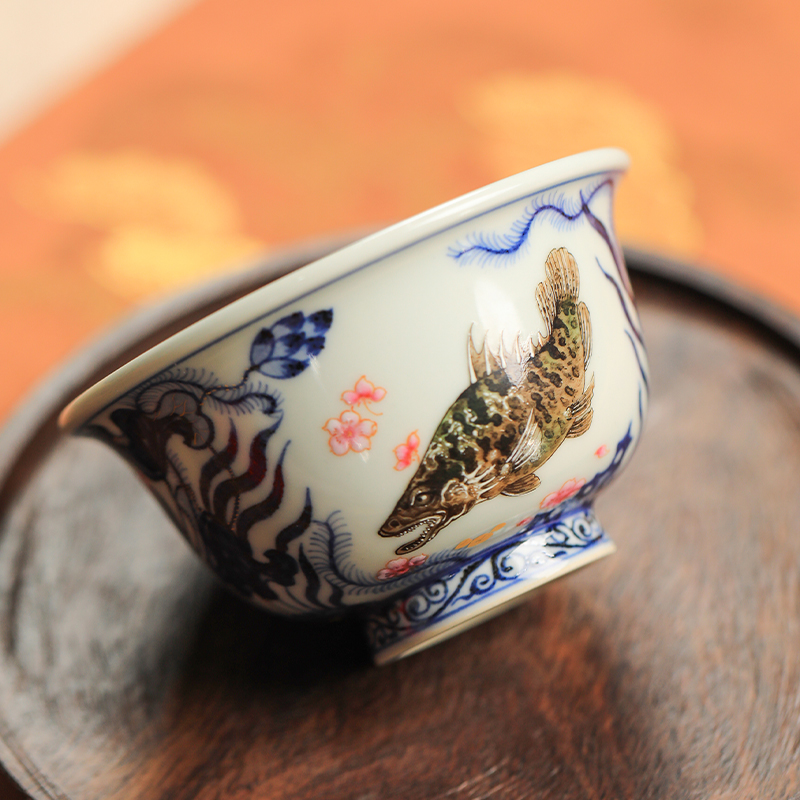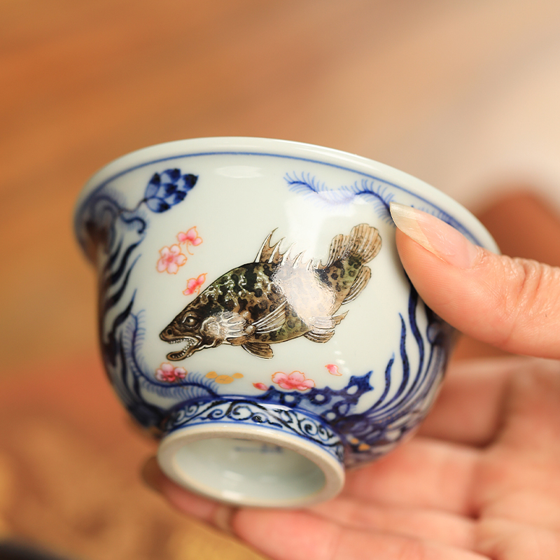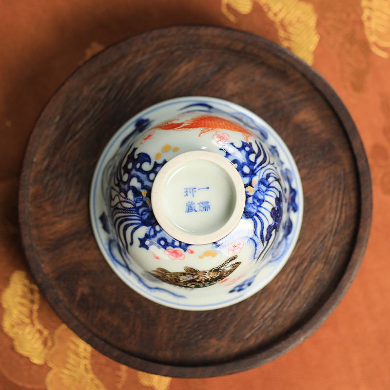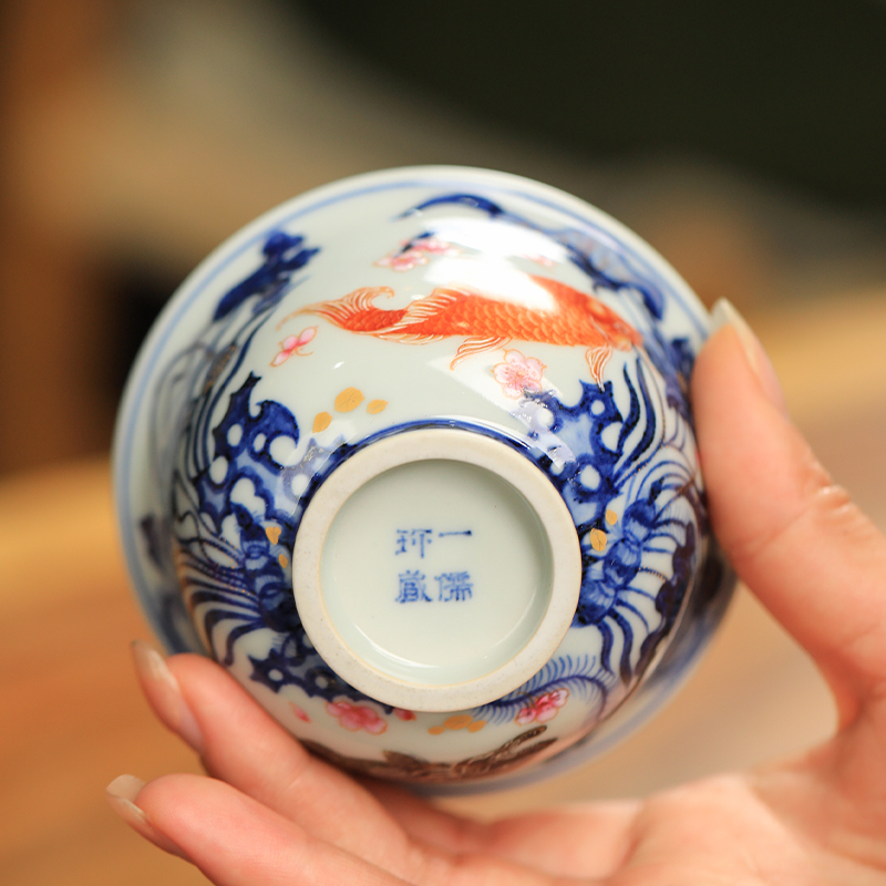 一儒堂郑福星联名青花加彩鱼藻压手杯