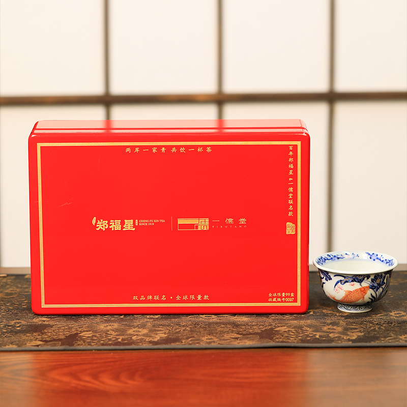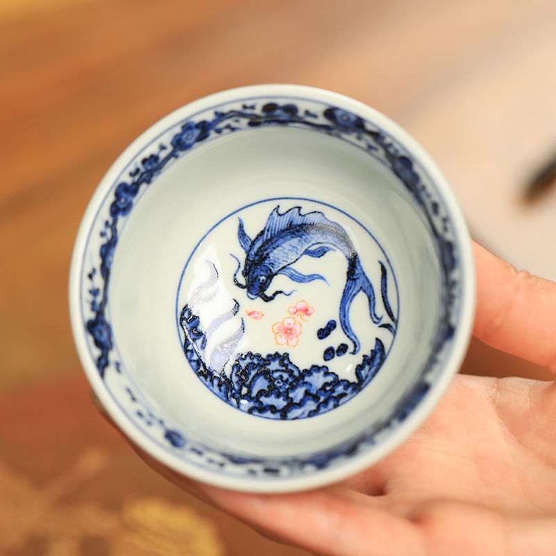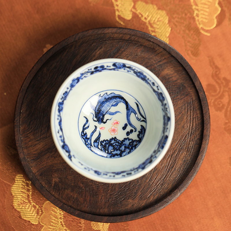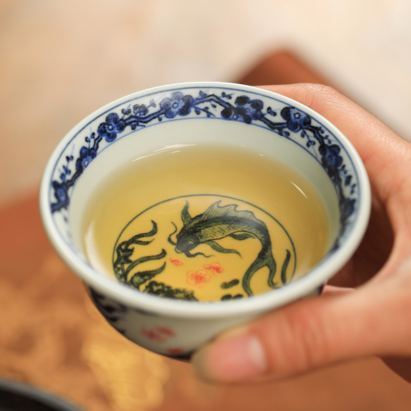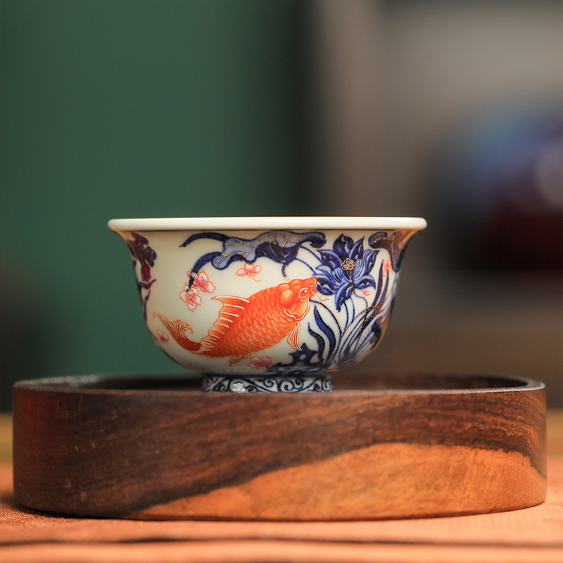 一儒堂郑福星联名青花加彩鱼藻压手杯