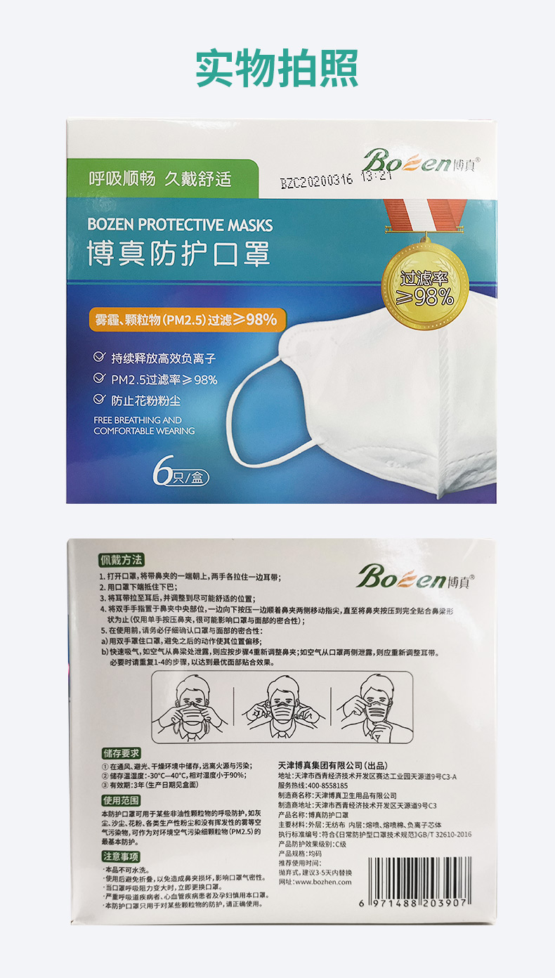 【博真优选】博真成人防护口罩不带阀款6只装