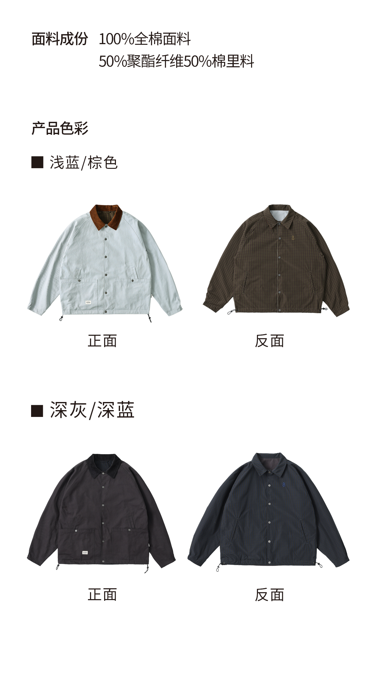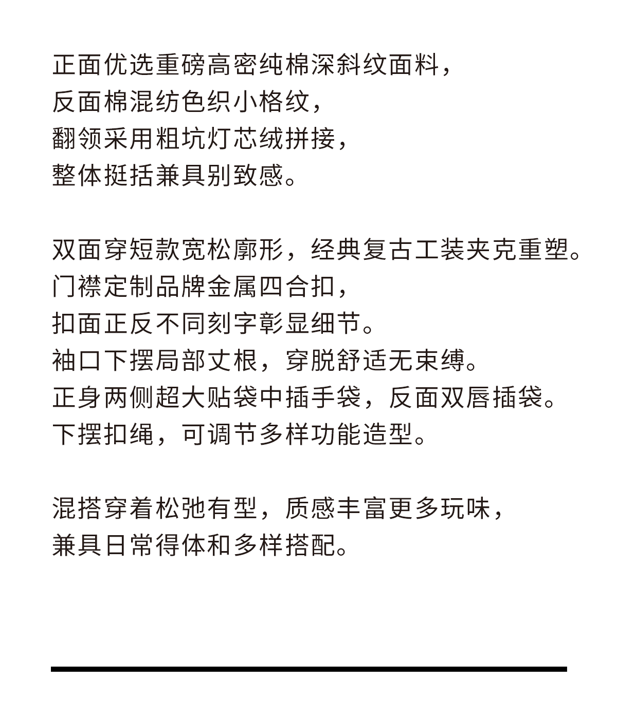 吃茶去chichaqu24秋冬双面穿全棉宽松翻领工装夹克复古休闲户外