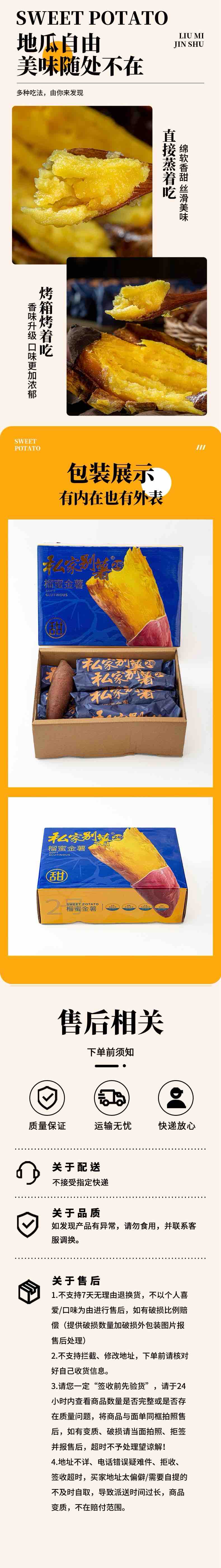 【储存方式】由于红薯的习性,收到以后不适合在箱子里闷放,请签收后第一时间拆箱,取出后及时摘掉网套,通风处保存,忌暴晒温差大,切勿捂闷。