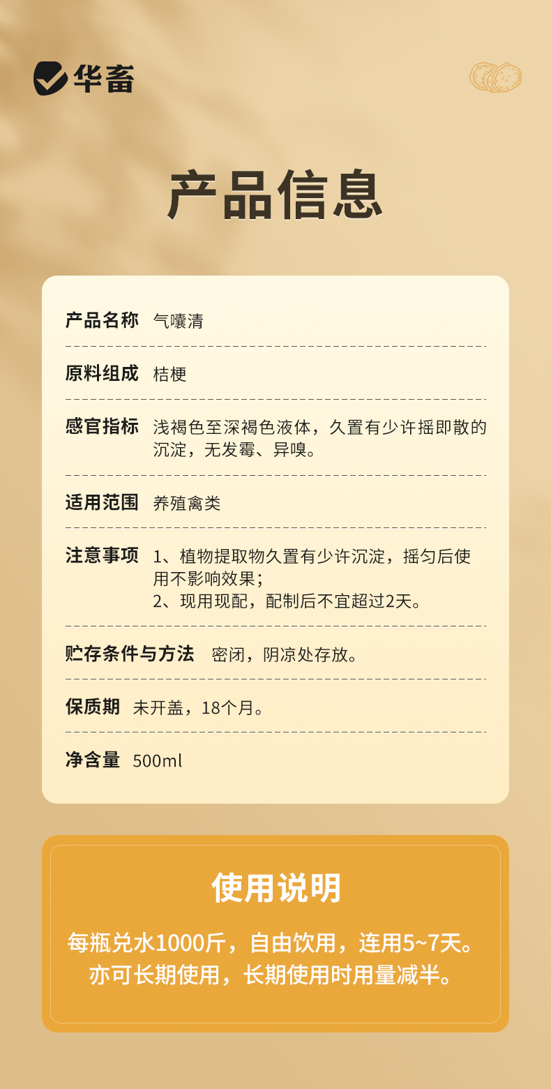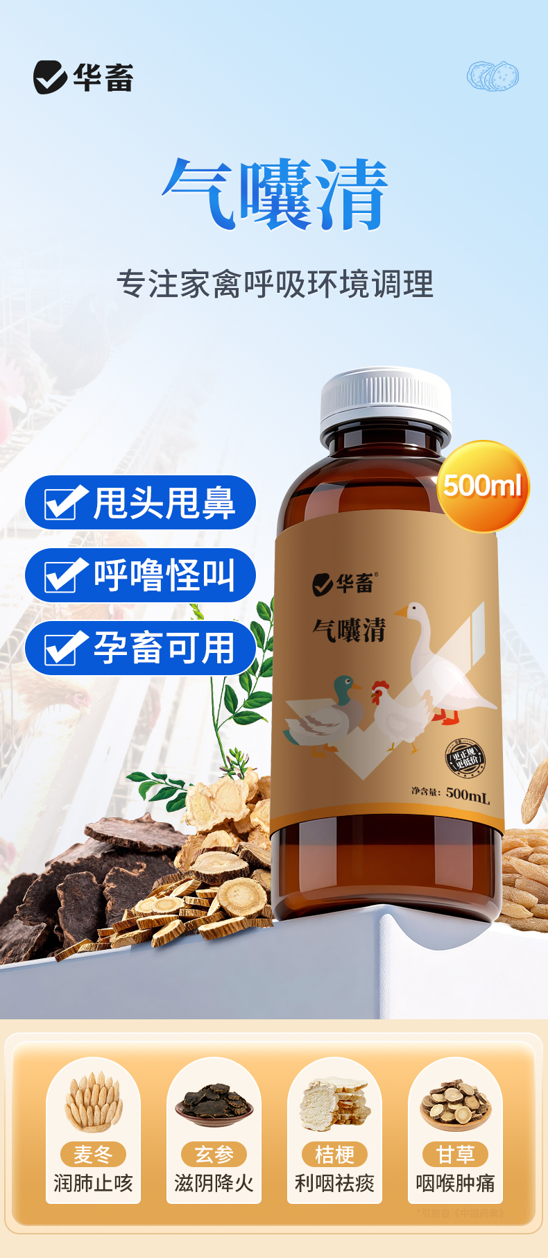 华畜气囔清500ml化痰止咳宣肺平喘孕畜可用