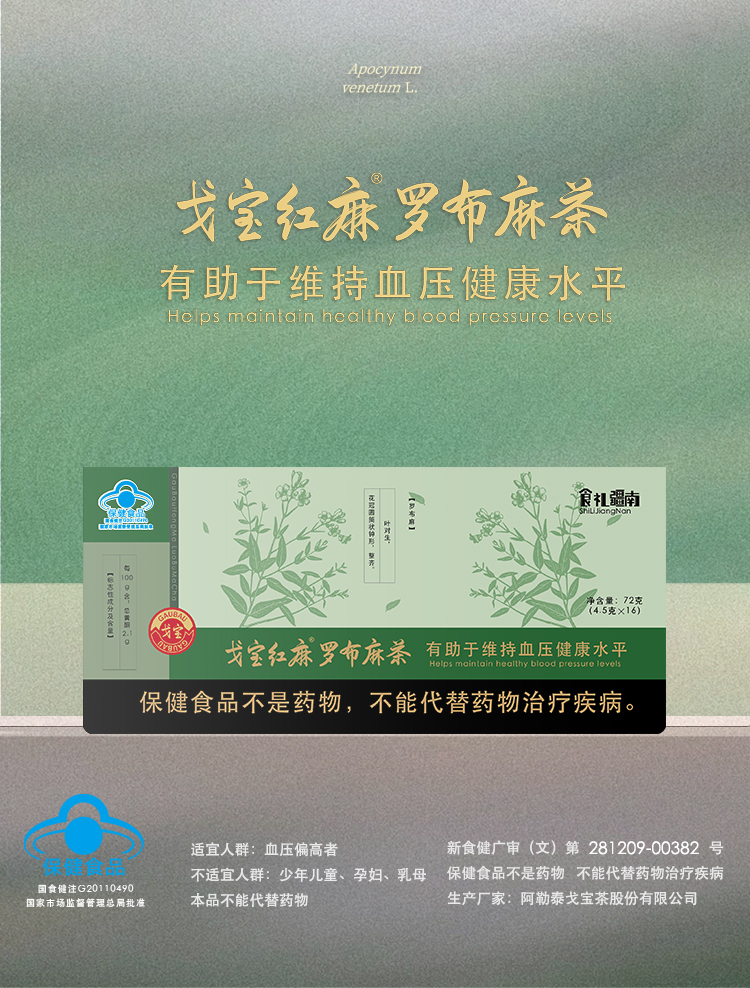 戈宝红麻罗布麻茶,它是血压偏高人群的安全温和日常调理饮品哦,天然靠谱,助力维持血压健康水平,是有小蓝帽的!我是低血压人,自己就试了一下口味,剩下的都寄我爸了,他三高,可以每天饭后泡上一袋,佛系降降压!