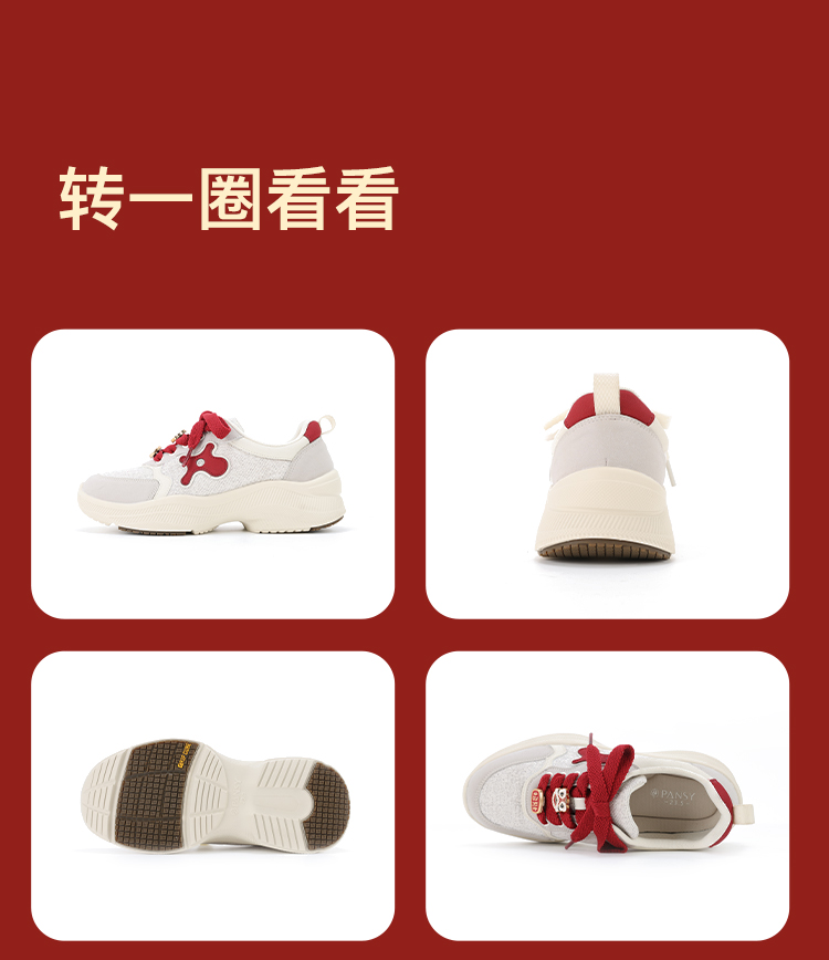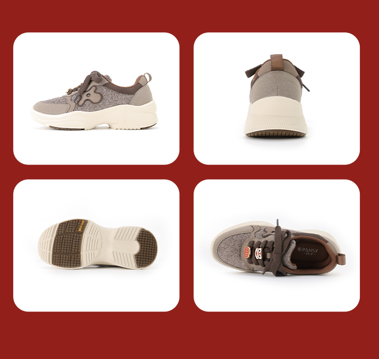 【Pansy盼喜圆头低帮休闲运动女鞋】后跟柔软舒适 保护脚踝 鞋带松紧设计 穿脱方便