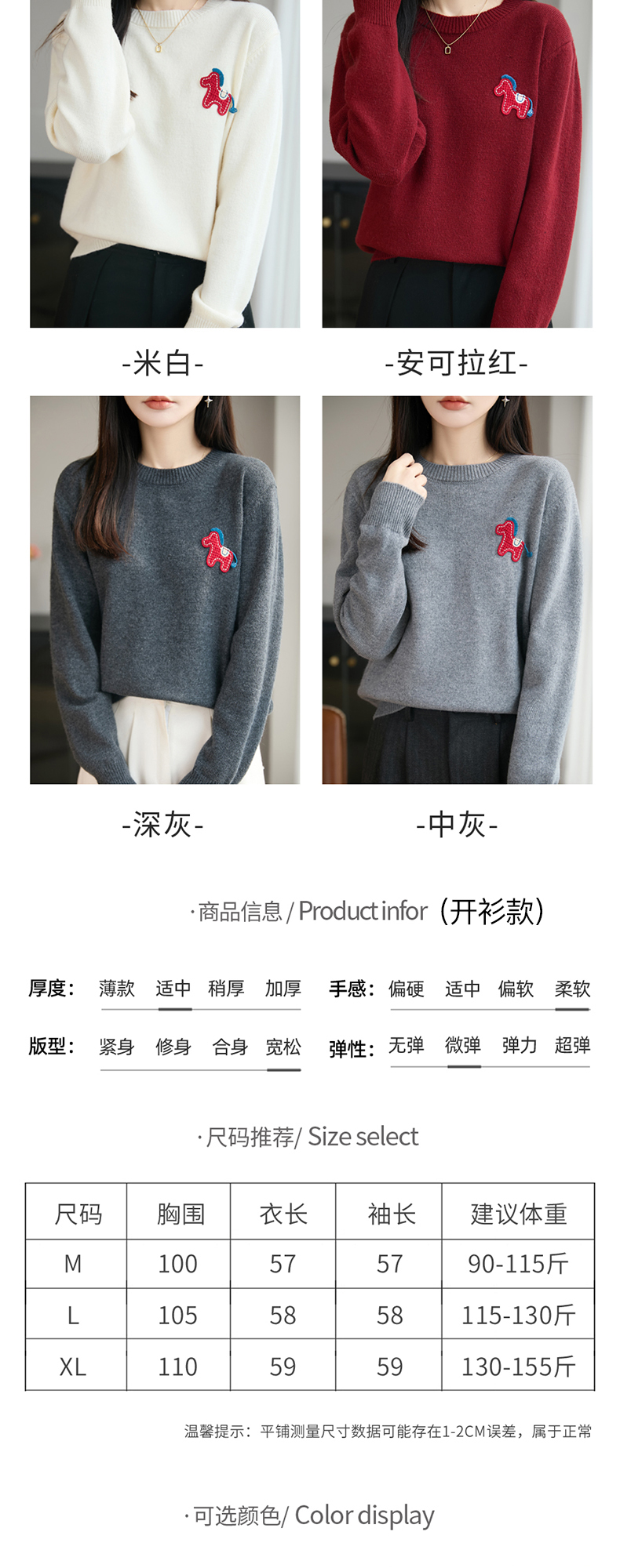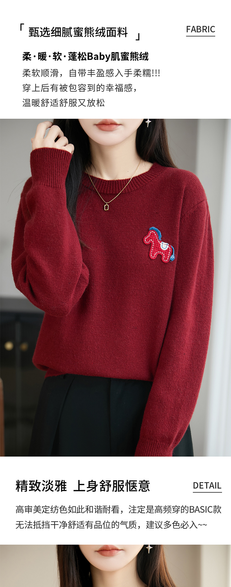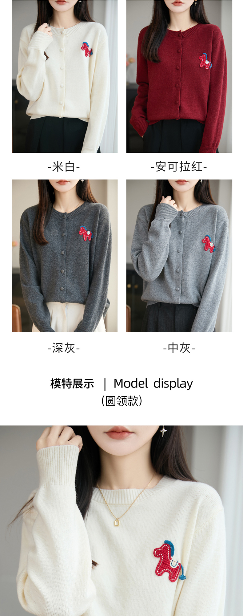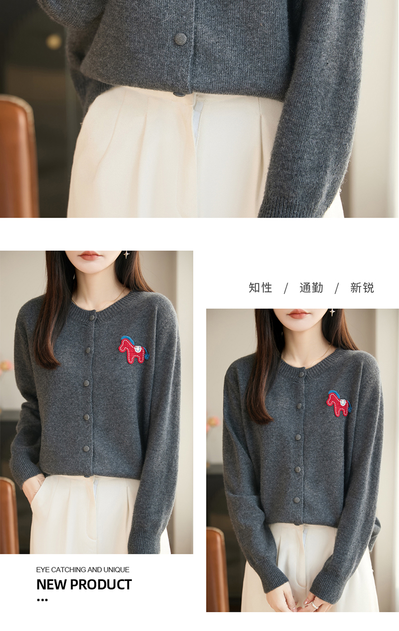 【新年必备,时髦百搭】【松软细腻,温暖舒适】秋冬新款女蜜熊绒卡通马圆领开衫针织衫百搭保暖新年小马毛衣