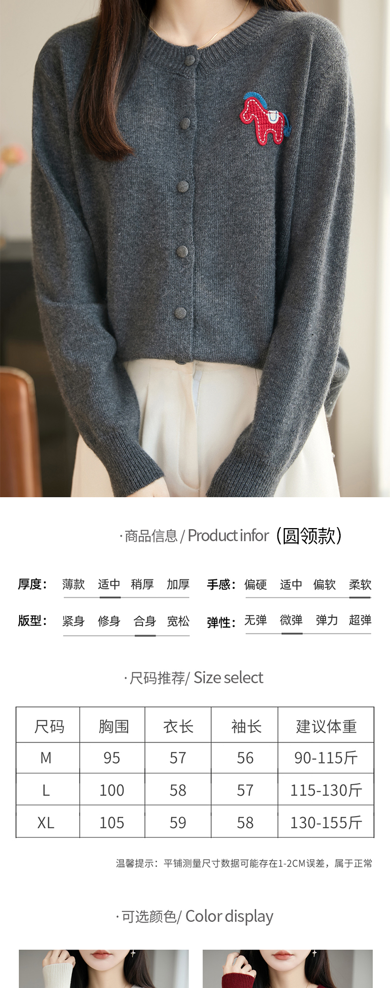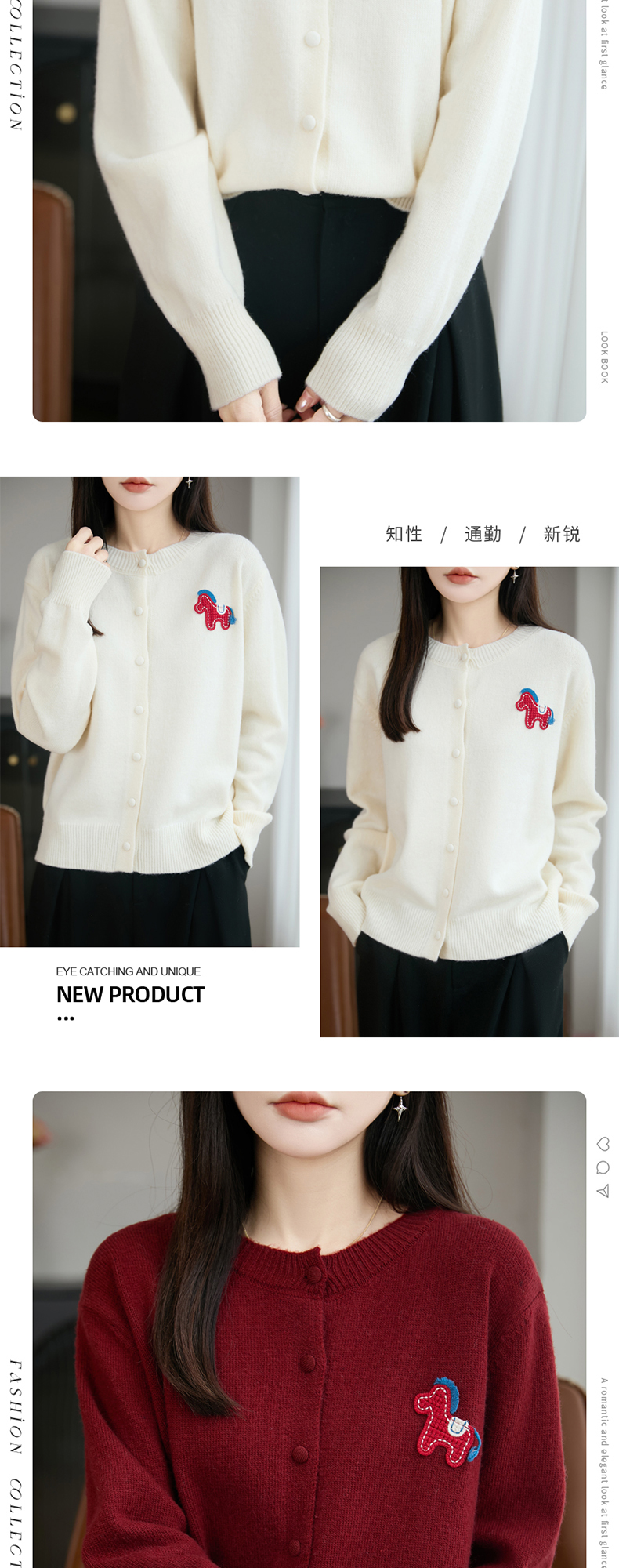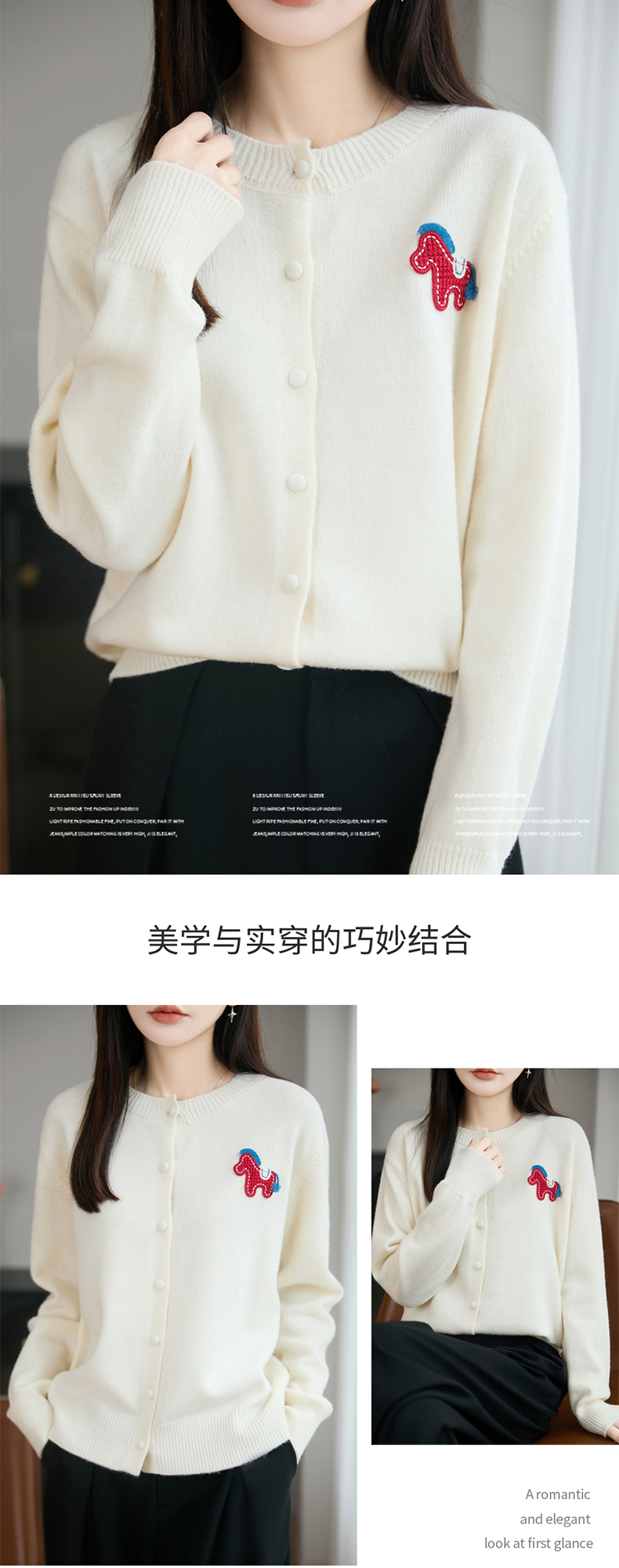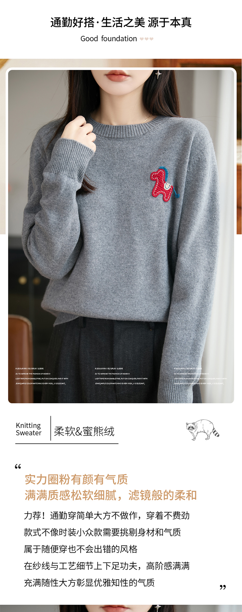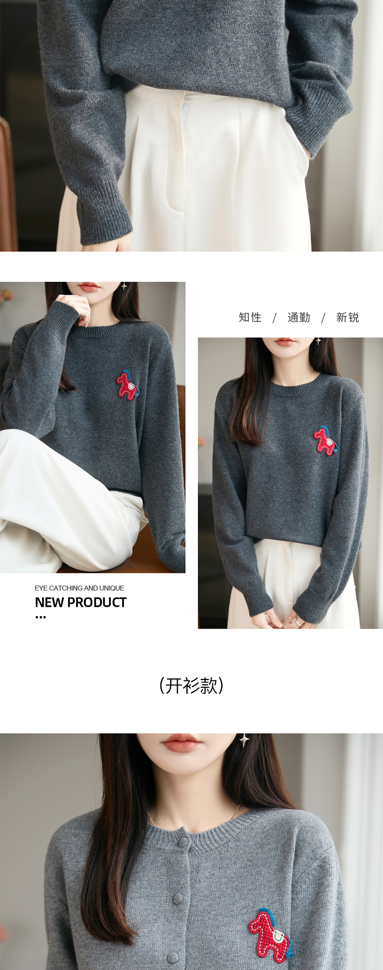【新年必备,时髦百搭】【松软细腻,温暖舒适】秋冬新款女蜜熊绒卡通马圆领开衫针织衫百搭保暖新年小马毛衣