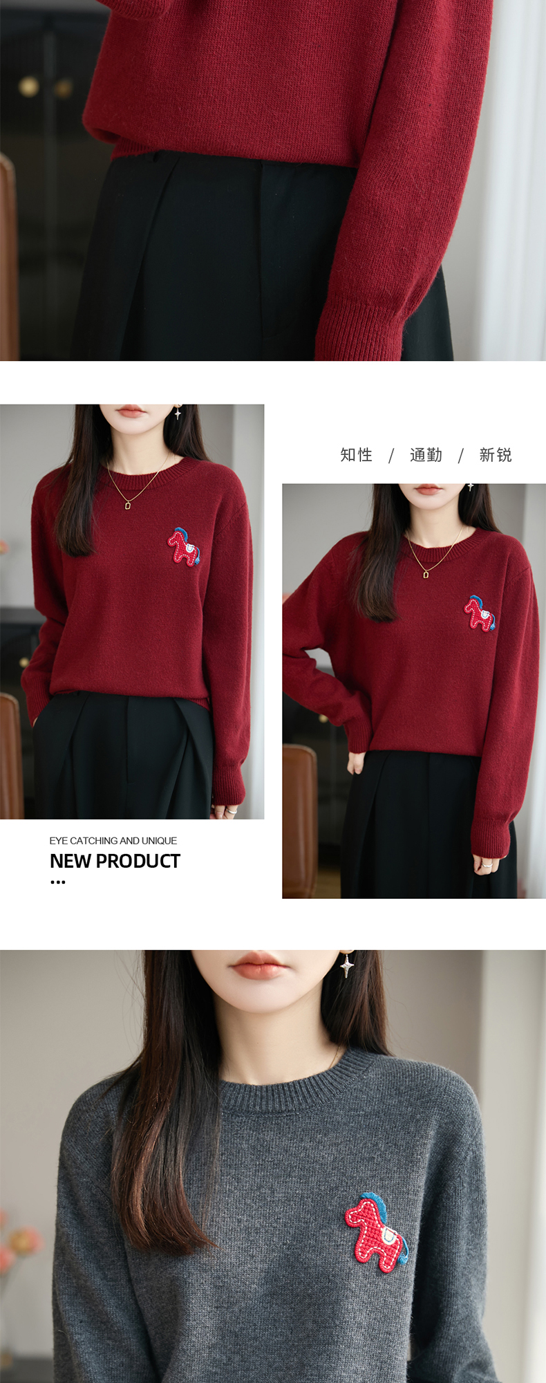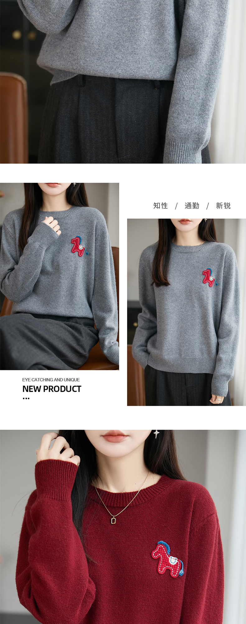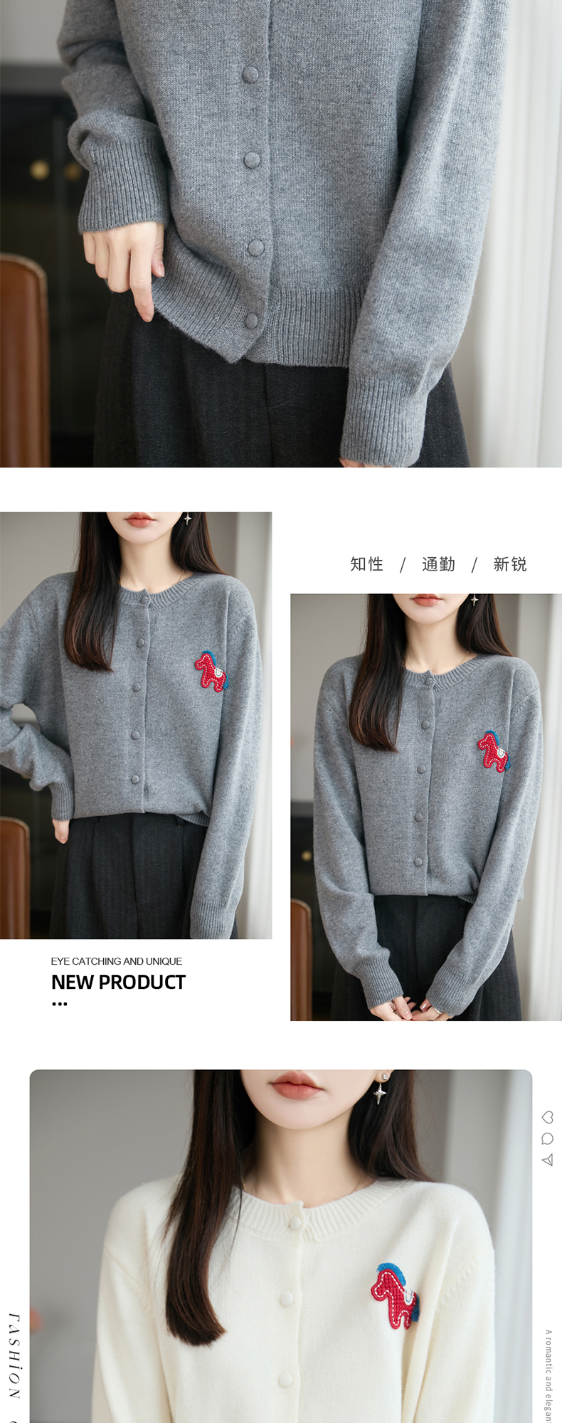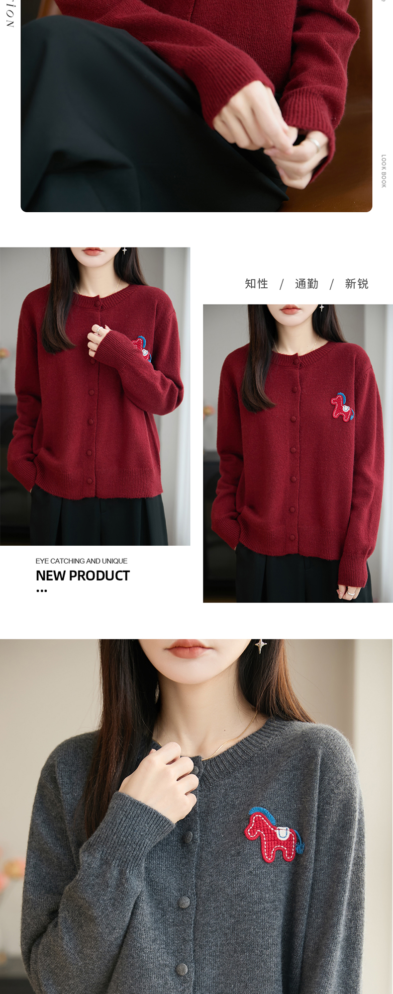 【新年必备,时髦百搭】【松软细腻,温暖舒适】秋冬新款女蜜熊绒卡通马圆领开衫针织衫百搭保暖新年小马毛衣