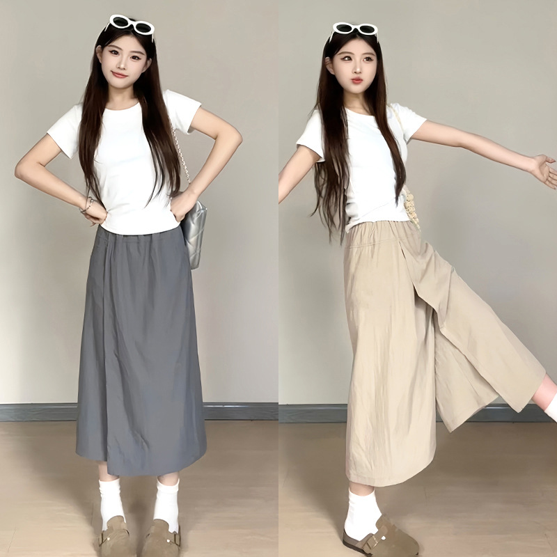 【2025夏季新款山本裤裙】高腰+八分裤裙的设计百搭且显瘦不易走光,面料透气舒服,日常上班通勤遛弯休闲裤Y