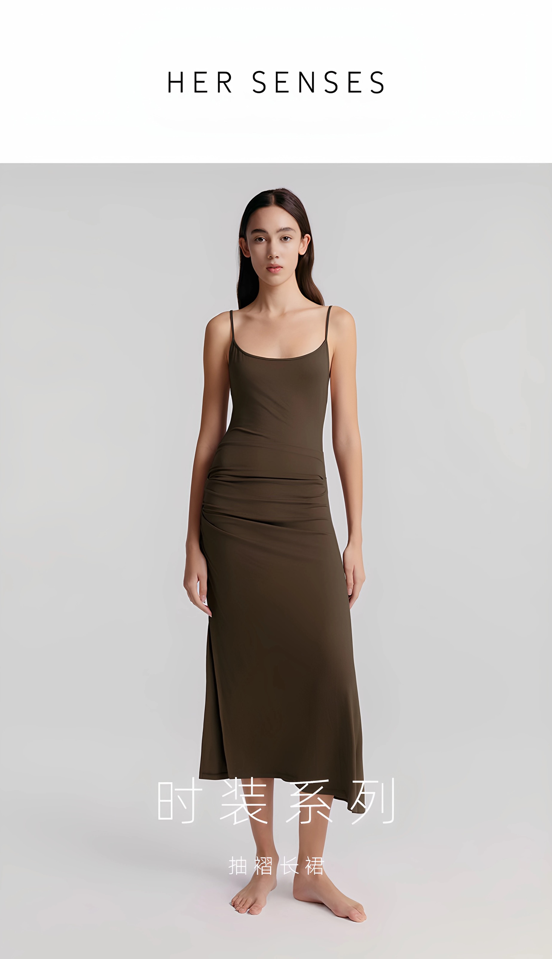 Her Senses|时装 12WDR09J1 打褶吊带连衣裙 [ 巧克力棕BR19 ]