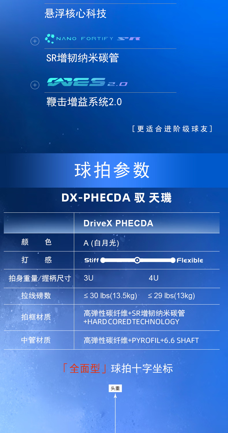 威克多VICTOR羽毛球拍全碳素碳纤维全面均衡单拍驭DX-PHECDA天玑
