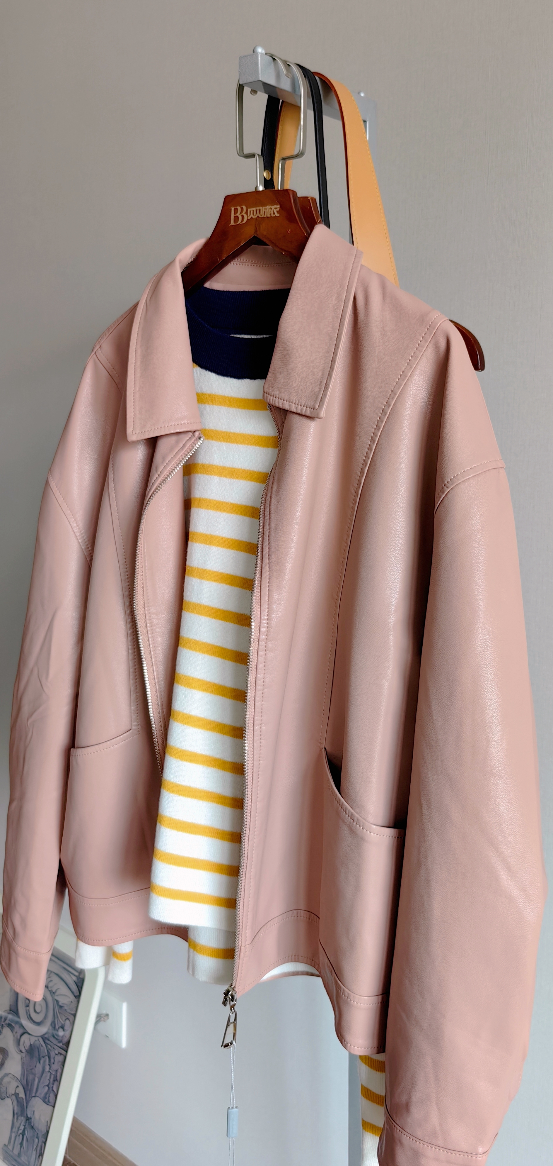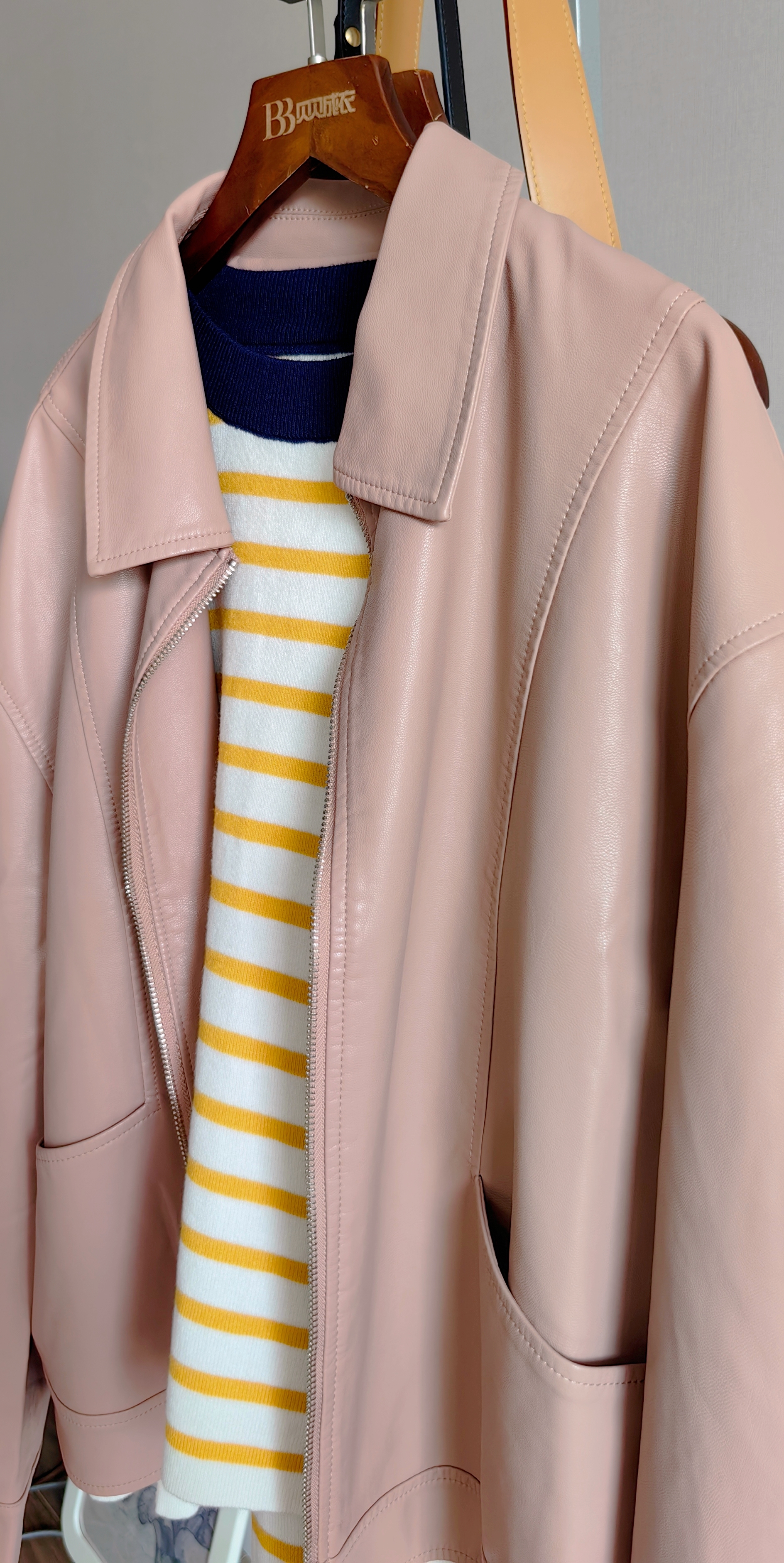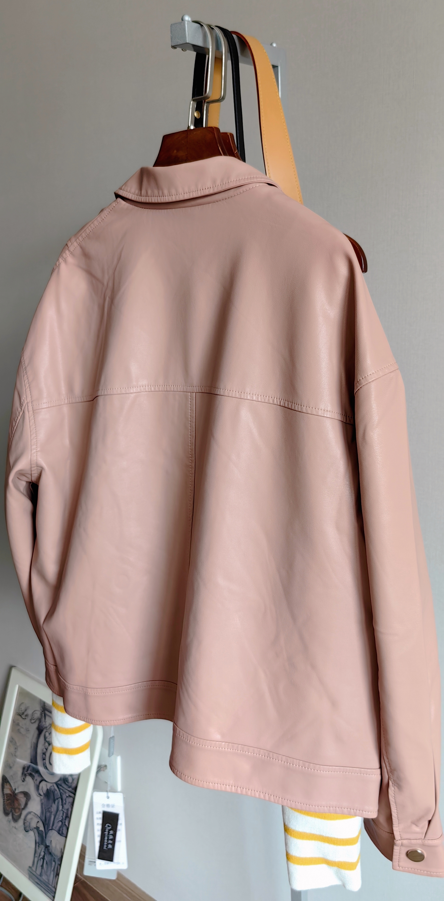 商场同步的皮夹克,新款新色,买到就是赚到~版型超好。不会过于硬挺更不会软榻没型!