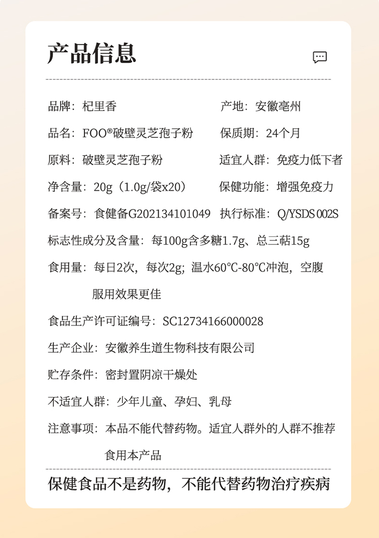 【冬季滋补】杞里香20g盒装破壁灵芝孢子粉有机产品和保健品双认证 低温剪切破壁技术含多糖和三萜 成年人养护身体健康