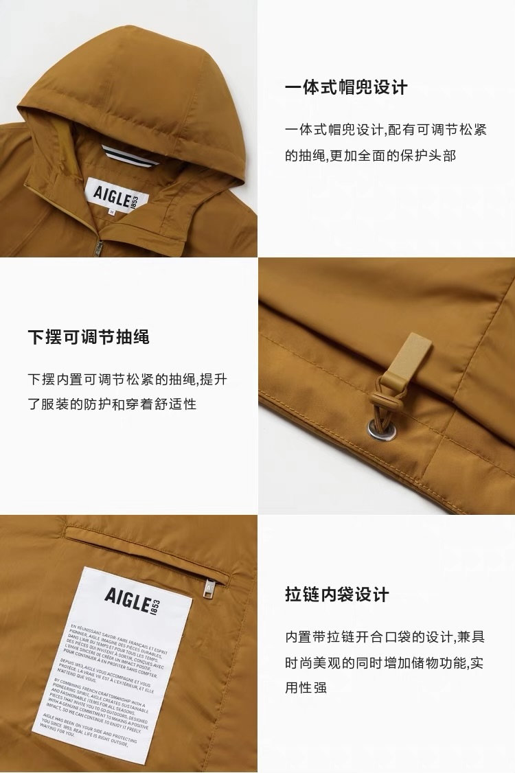 【4F】AIGLE艾高2024年春夏款GORE-TEX防风防雨透汽户外冲锋衣夹克女