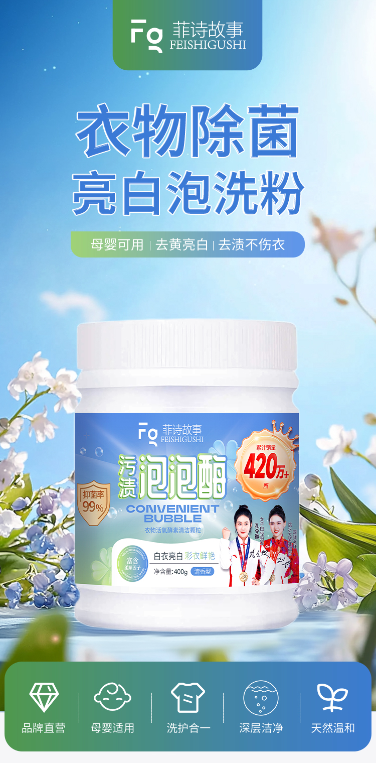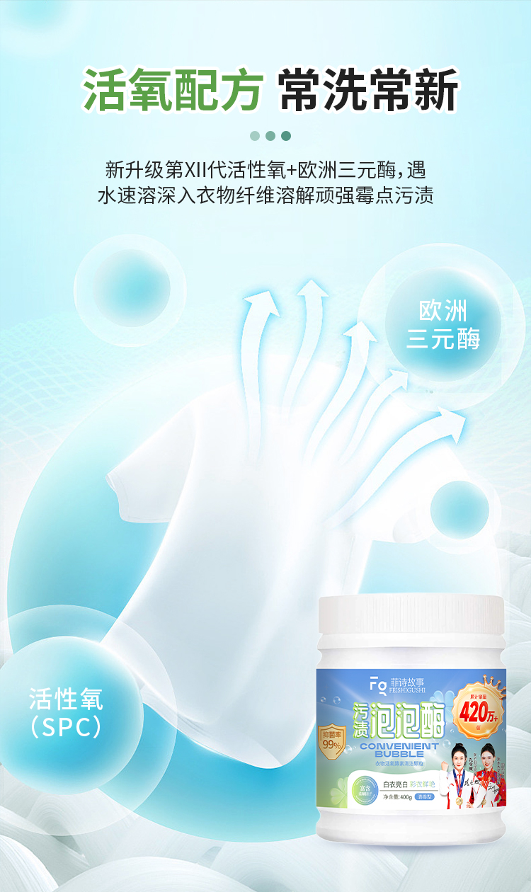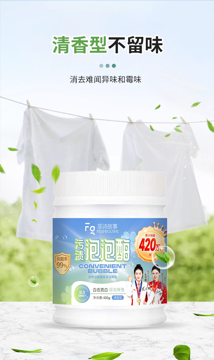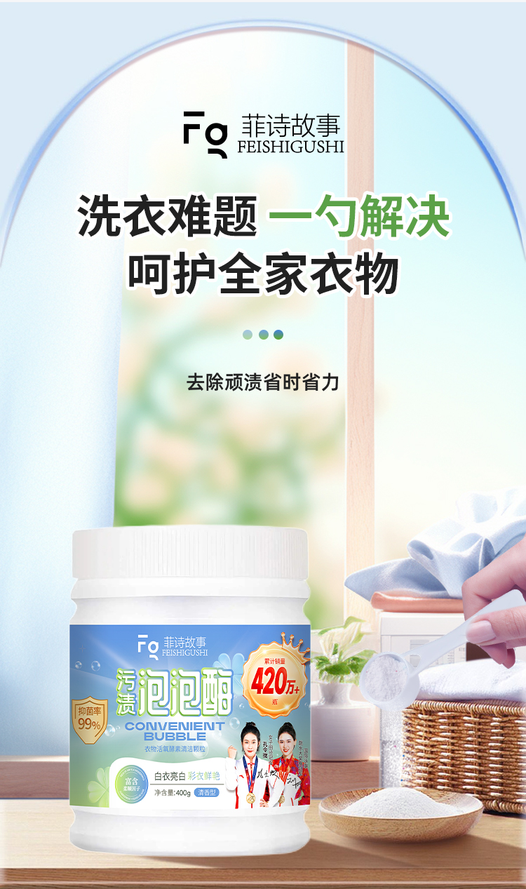 菲诗故事泡泡酶,发黄发霉衣物救星,衣领鞋子袖口袜子校服抹布一泡就干净,奶渍尿渍便渍通通搞定