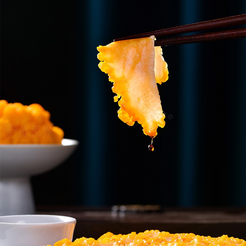 【食用方法】做切片蘸生抽芥末吃、油炸、红烧或炖煮金耳羹、金耳汤。