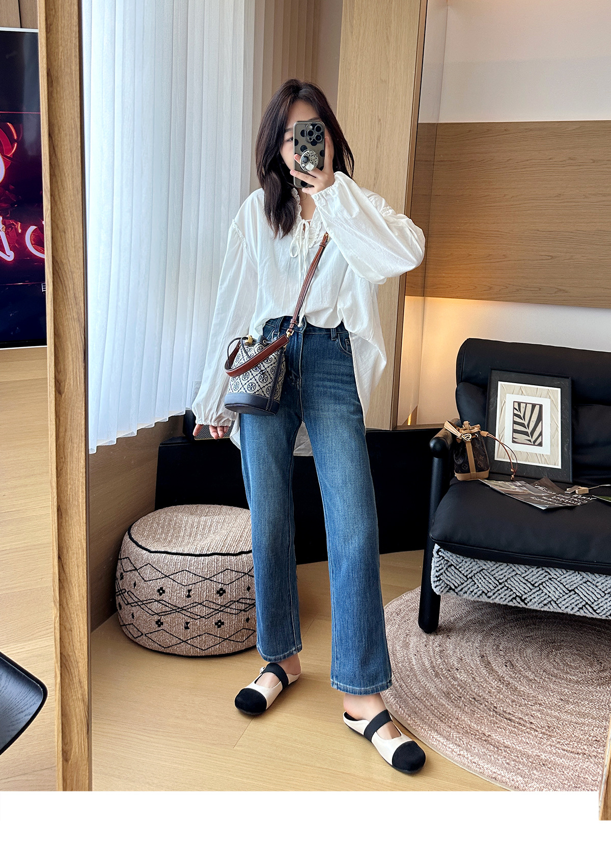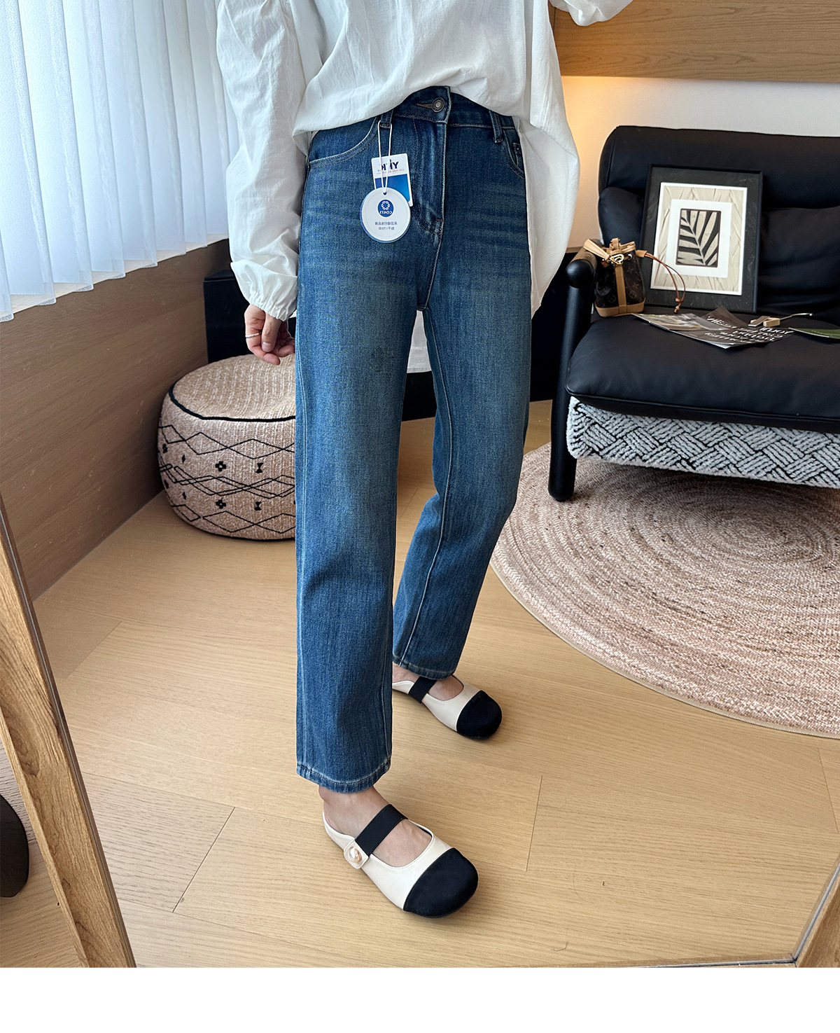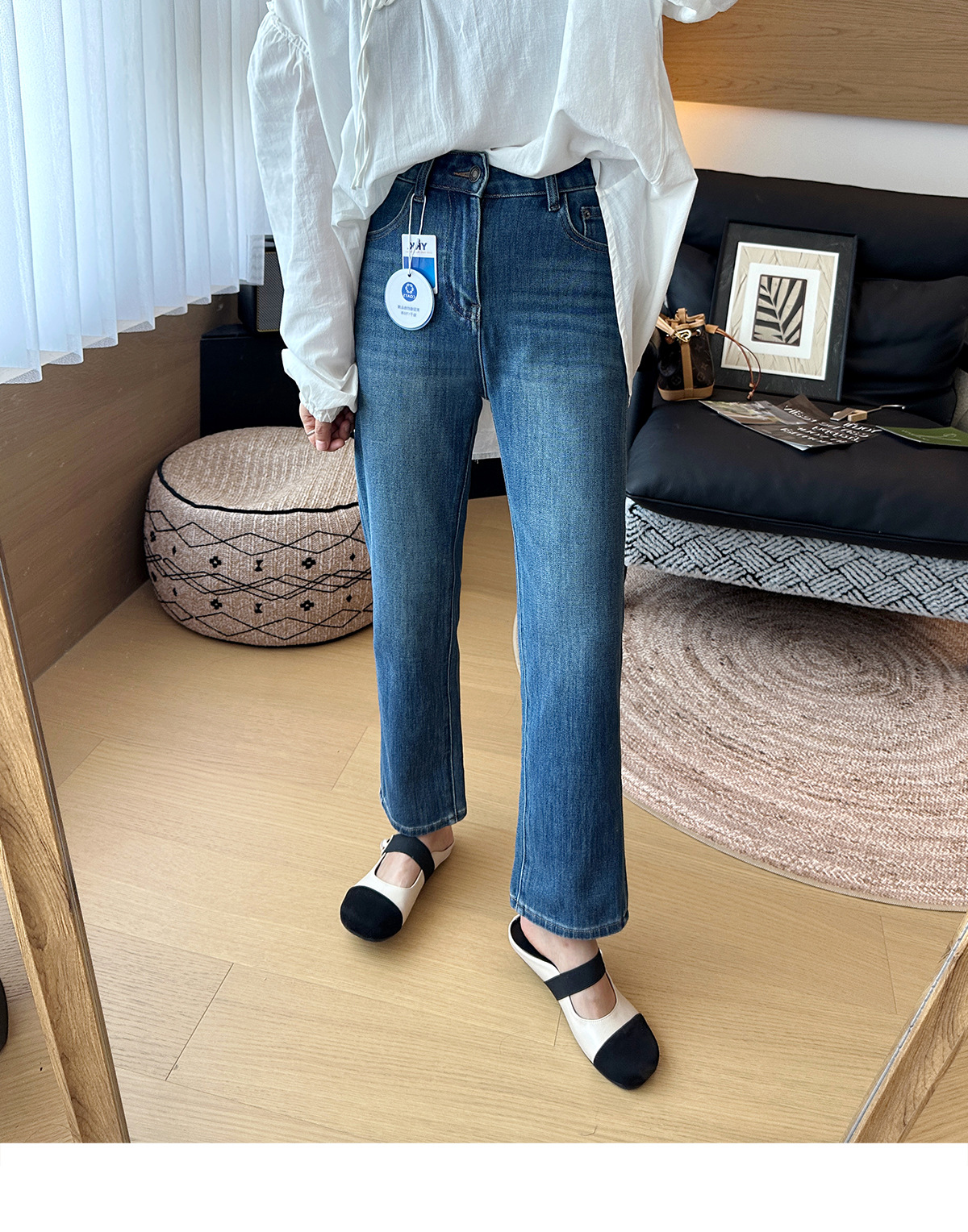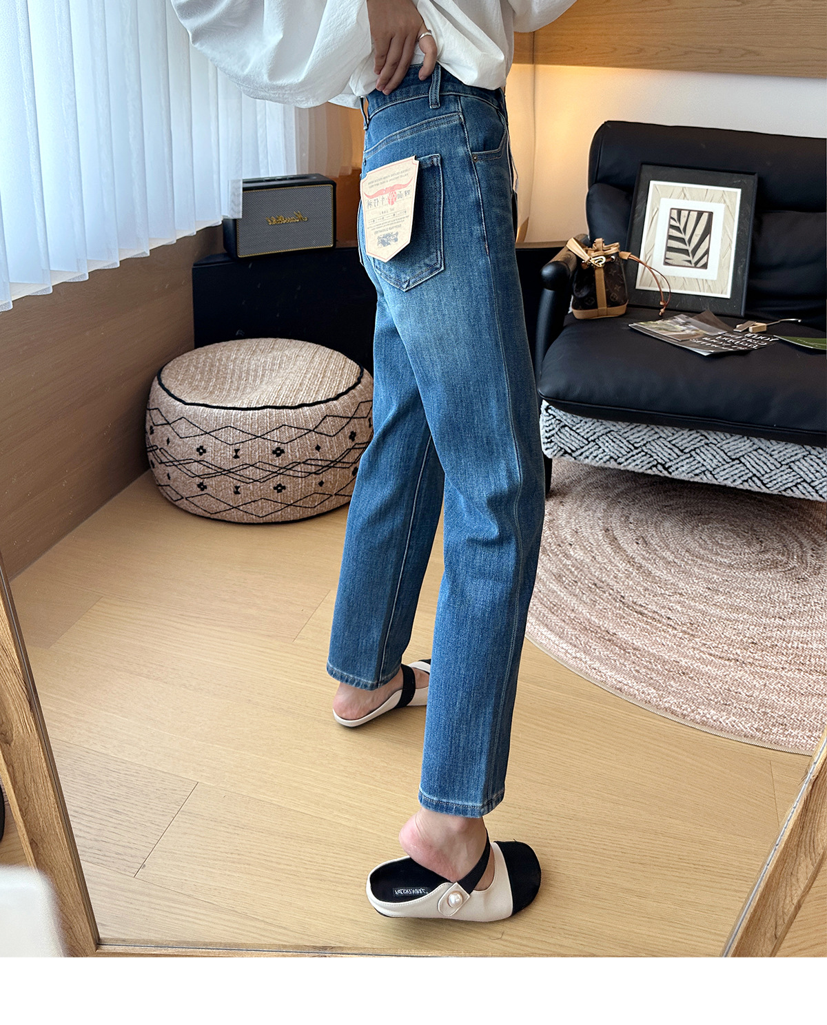 九分烟管裤型,线条流畅自然