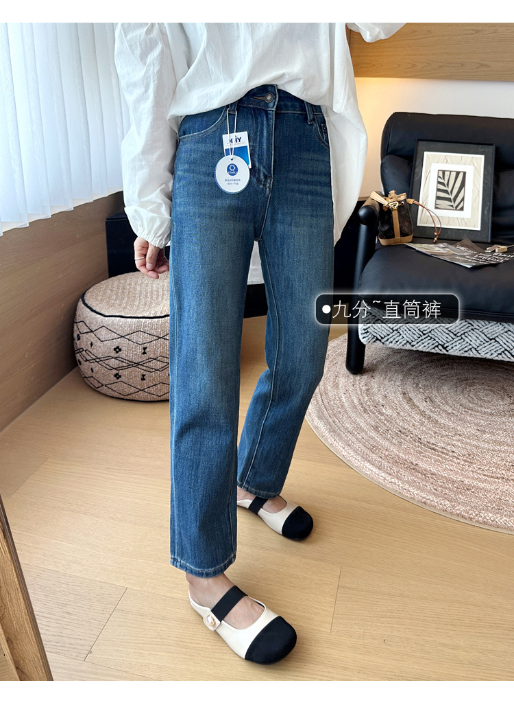早秋小个子九分四面弹直筒裤