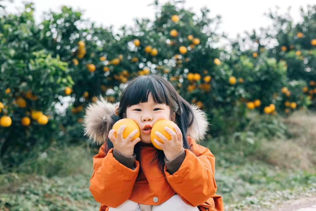 摘了橘子榨橘子汁,这可是需要体力哦,加油吧!