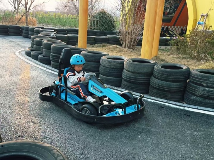 转弯甩尾超刺激,终点举手欢呼:"我是冠军!