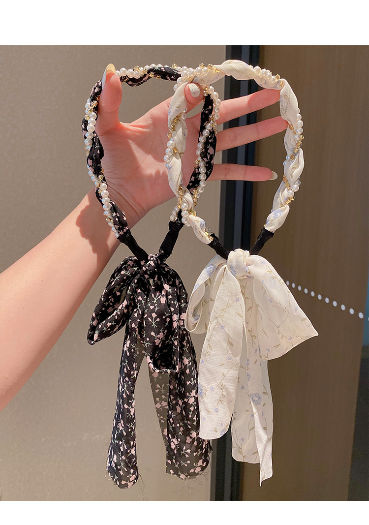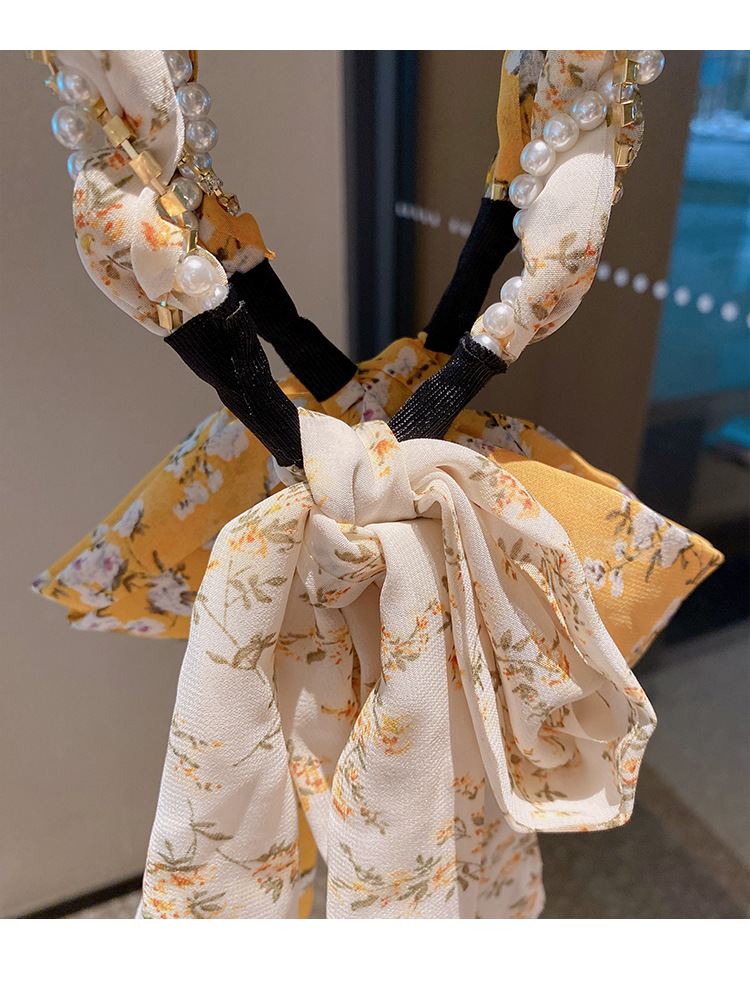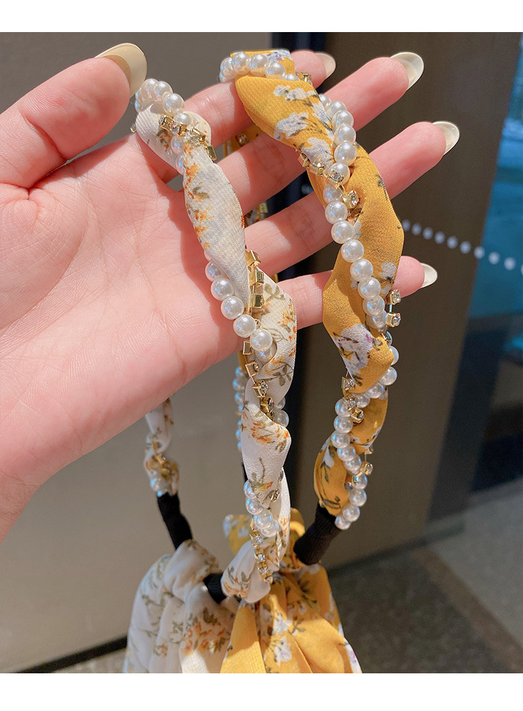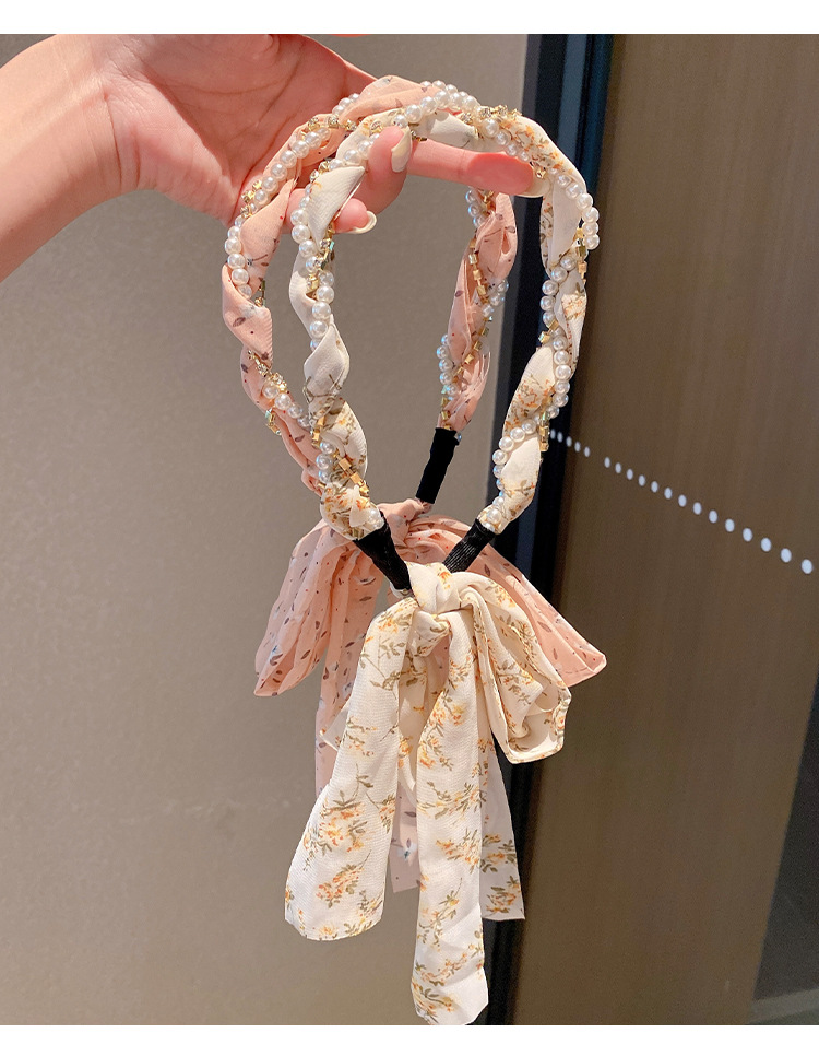 碎花飘带绑带女韩国复古法式水钻编发珍珠发箍头饰2023年新款发绳