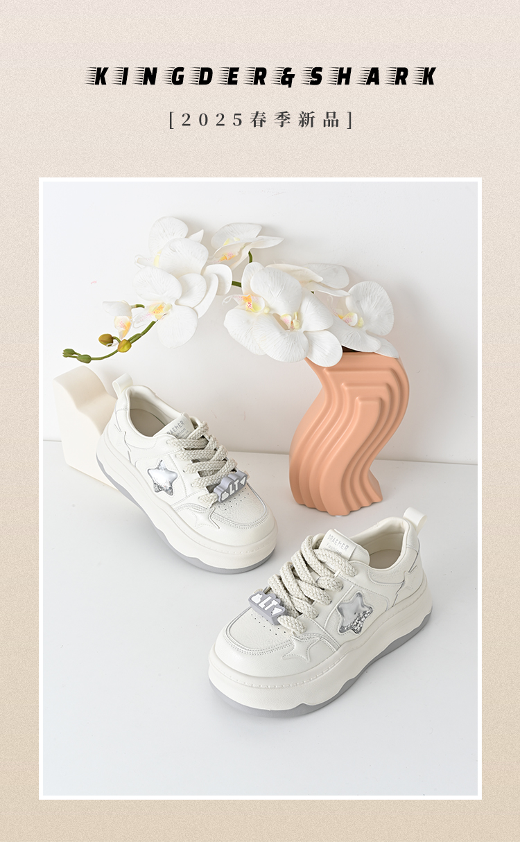 经典鲨2025年春季新款百搭圆头韩版时尚厚底休闲鞋溶解鞋女KW142-517021