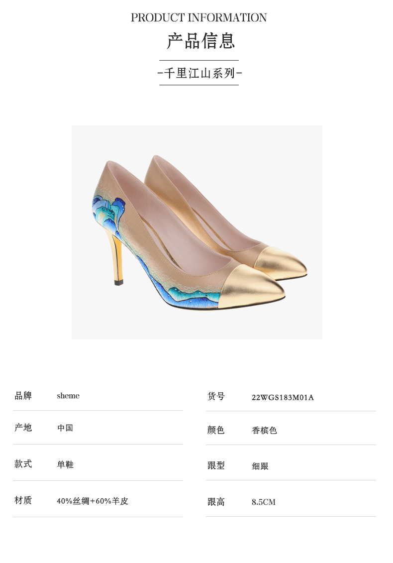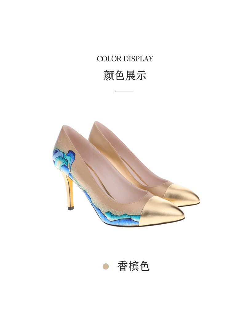 sheme刘敏涛同款 新中式《千里江山》系列优雅气质尖头细跟刺绣女鞋可定制