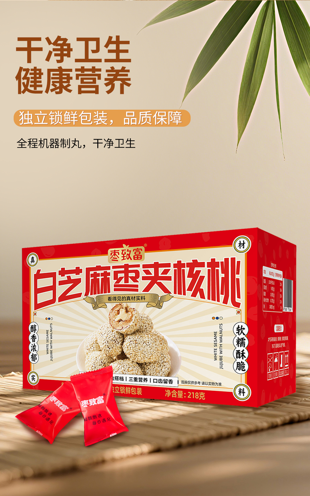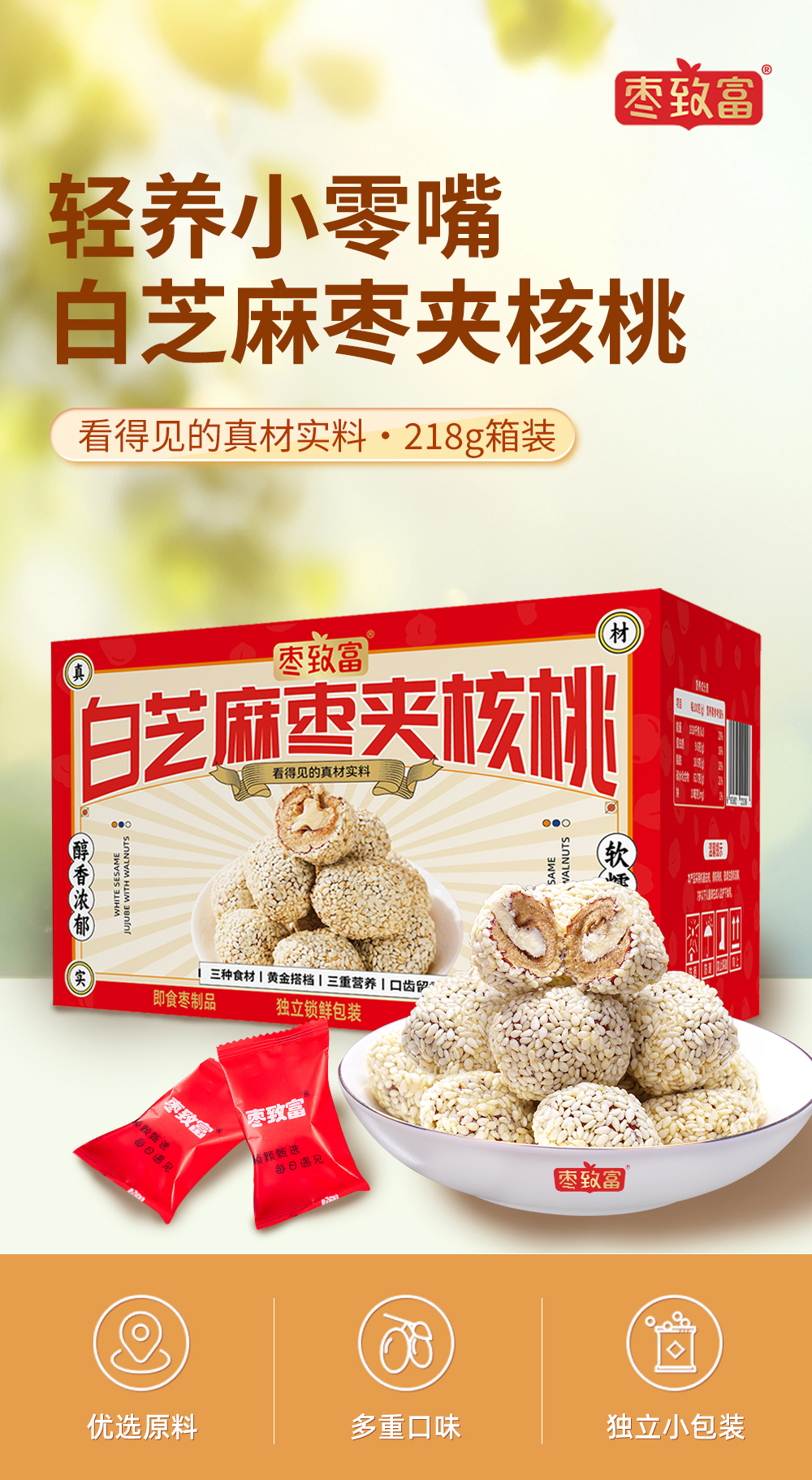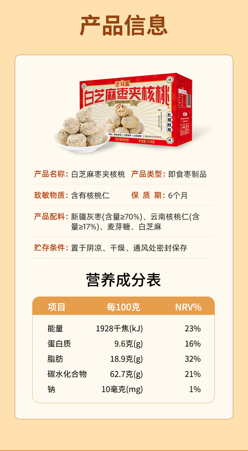 【品名】枣致富白芝麻枣夹核桃 【规格】218g*3盒 【保质期】6个月 【储存方法】请置于阴凉干燥处,避免阳光直射 【产地】郑州 【发货地】郑州 【发货快递】中通/申通 【不发货区域】新疆,西藏,港澳台地区不发 【发货时效】48小时,节假日顺延 |