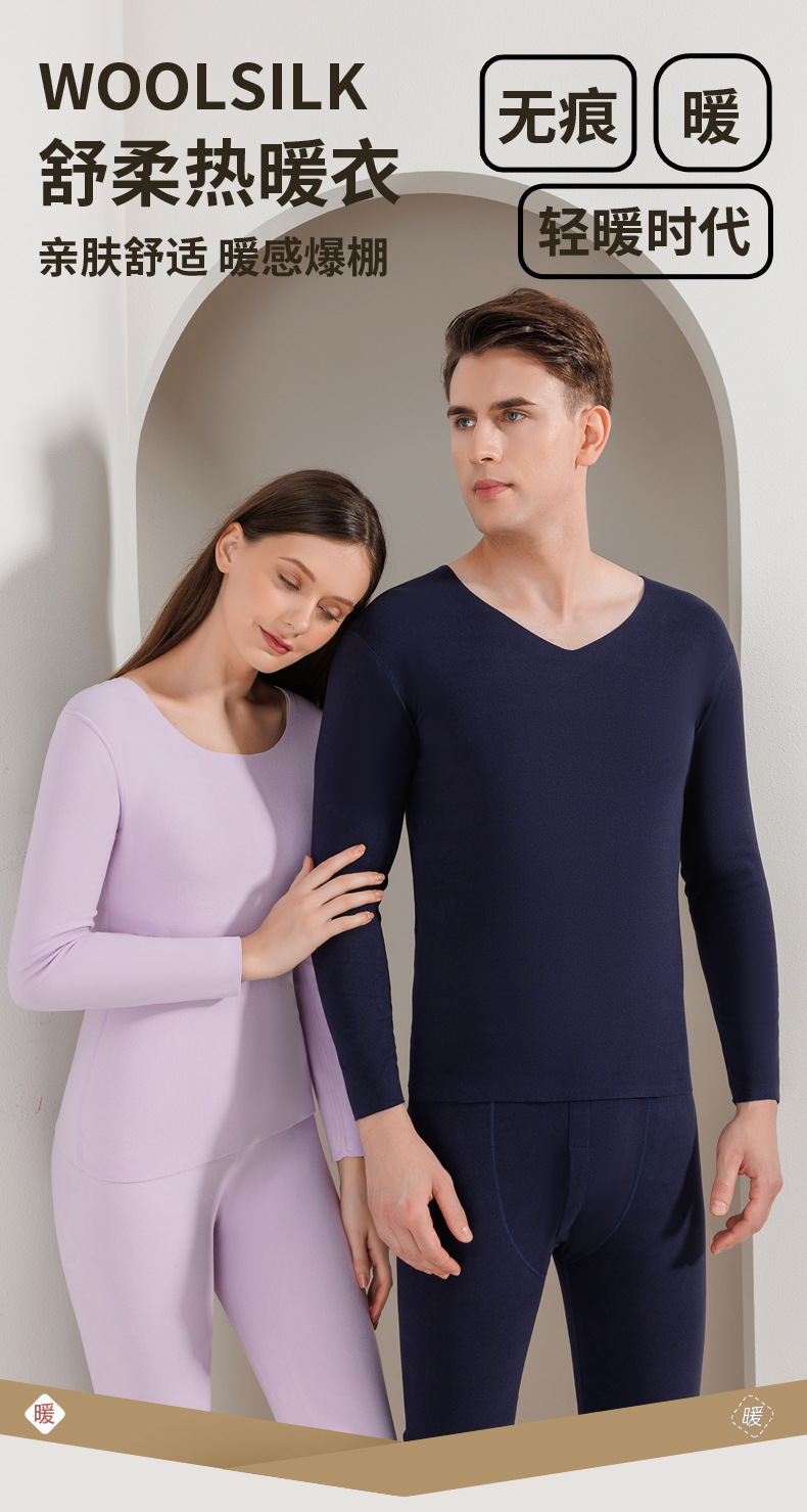 【科技内衣❗️舒柔热暖衣套装】无痕柔软,亲肤舒适,暖感爆棚!情侣双面磨毛无痕保暖内衣男女士秋冬加绒加厚秋衣秋裤打底